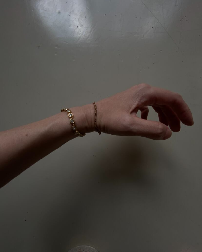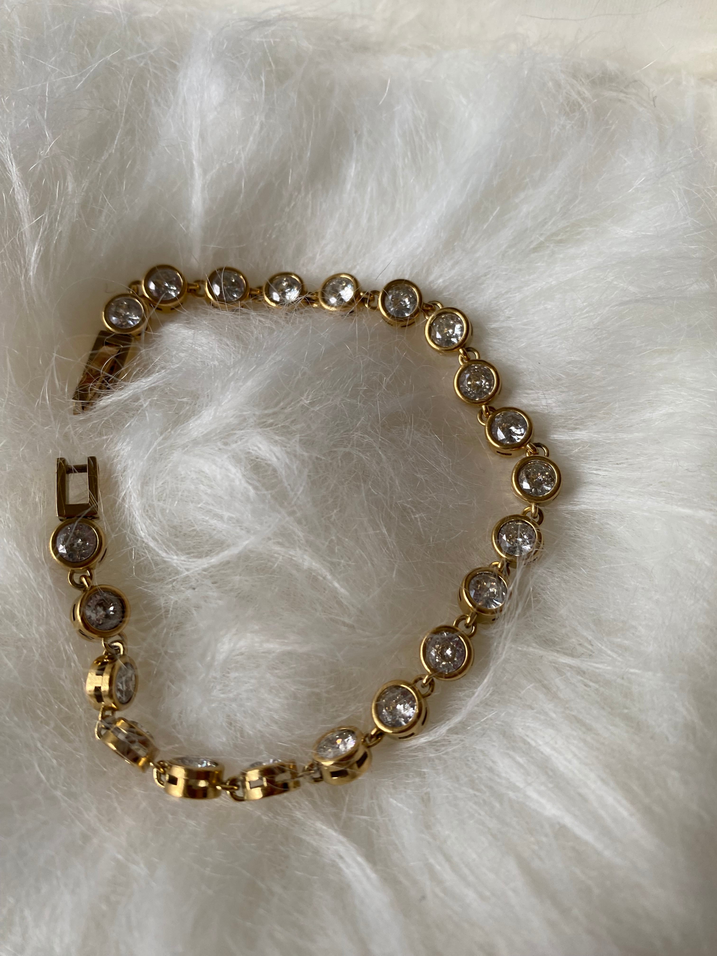 長さ約18㎝。ヨーロッパのマダムのイメージ。ジルコニアは、丸のデザインにこだわりました。また、留め具もディテールにこだわり、高級感があり、クラシックな雰囲気。