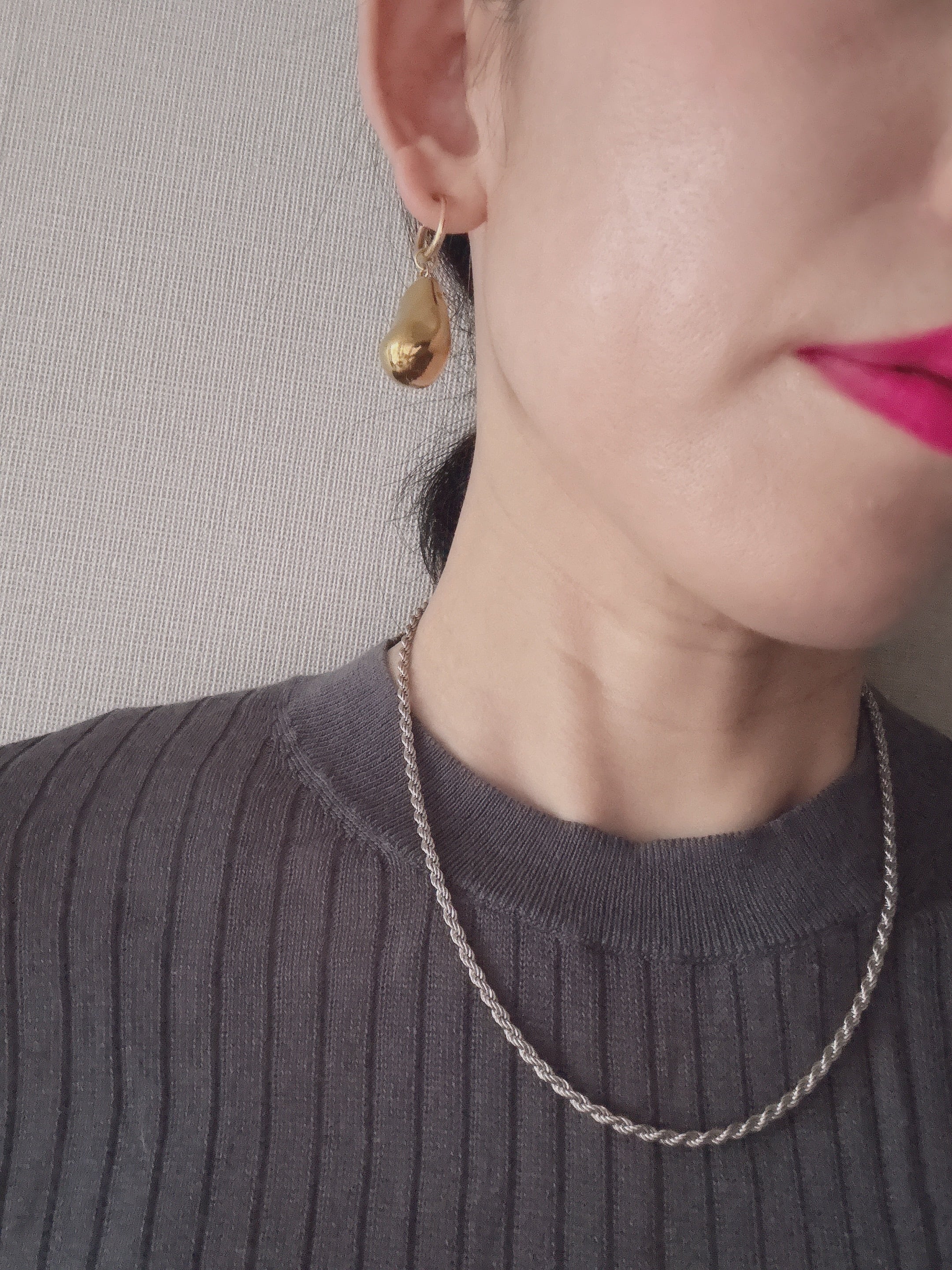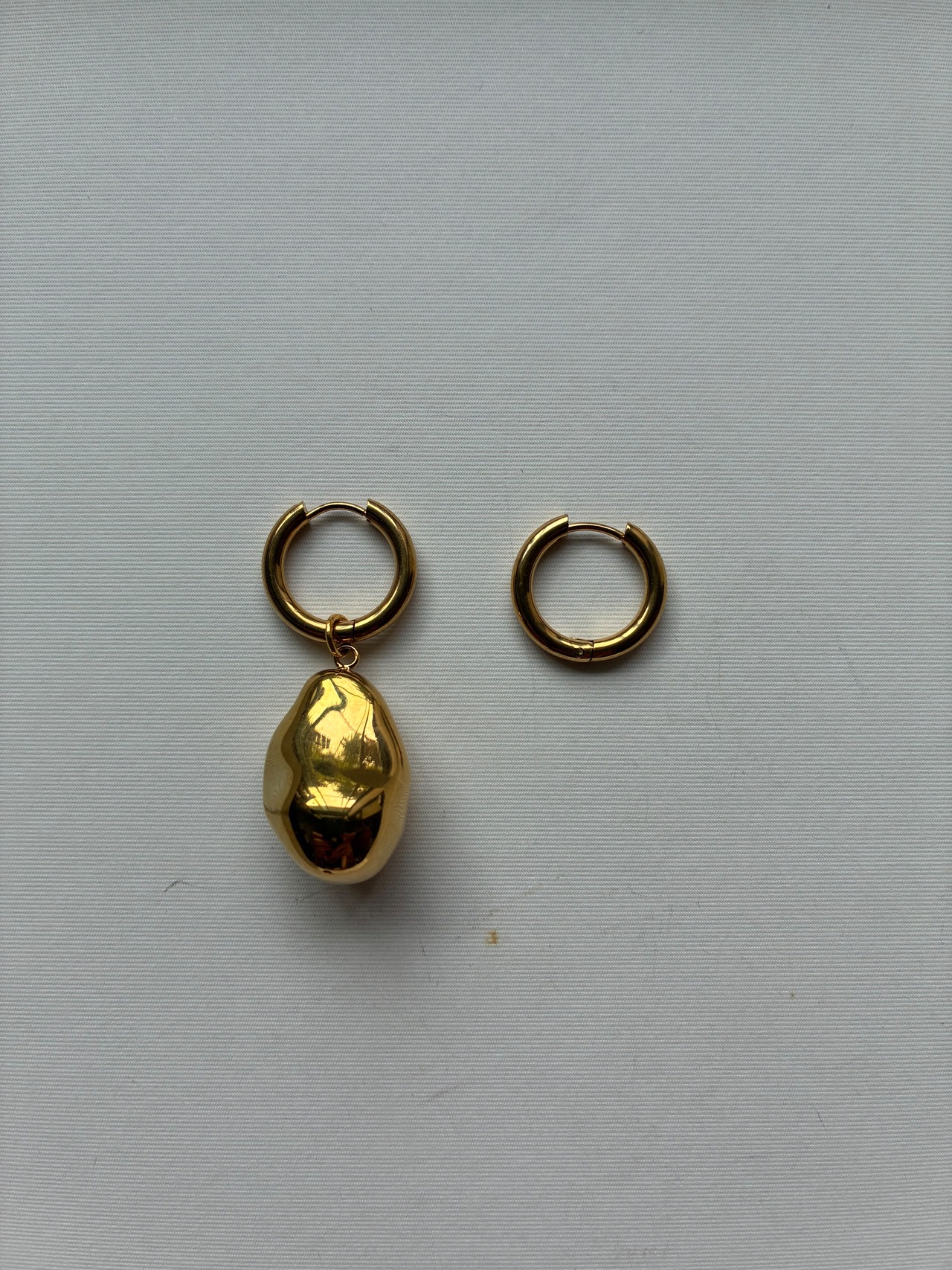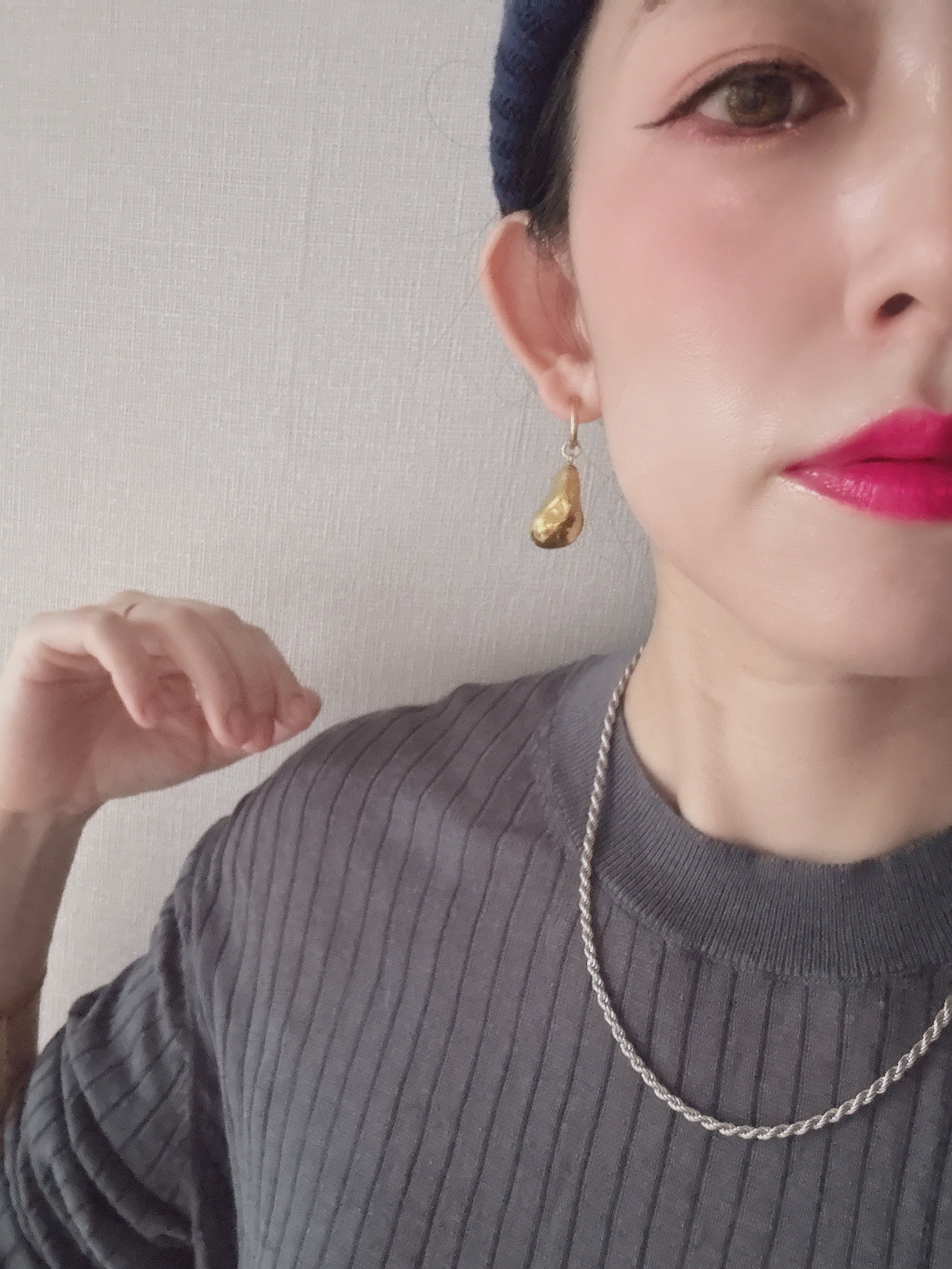 バロックパールの型でゴールドカラーを制作しました。フープから取り外し可能で、2wayで楽しんで頂けます。