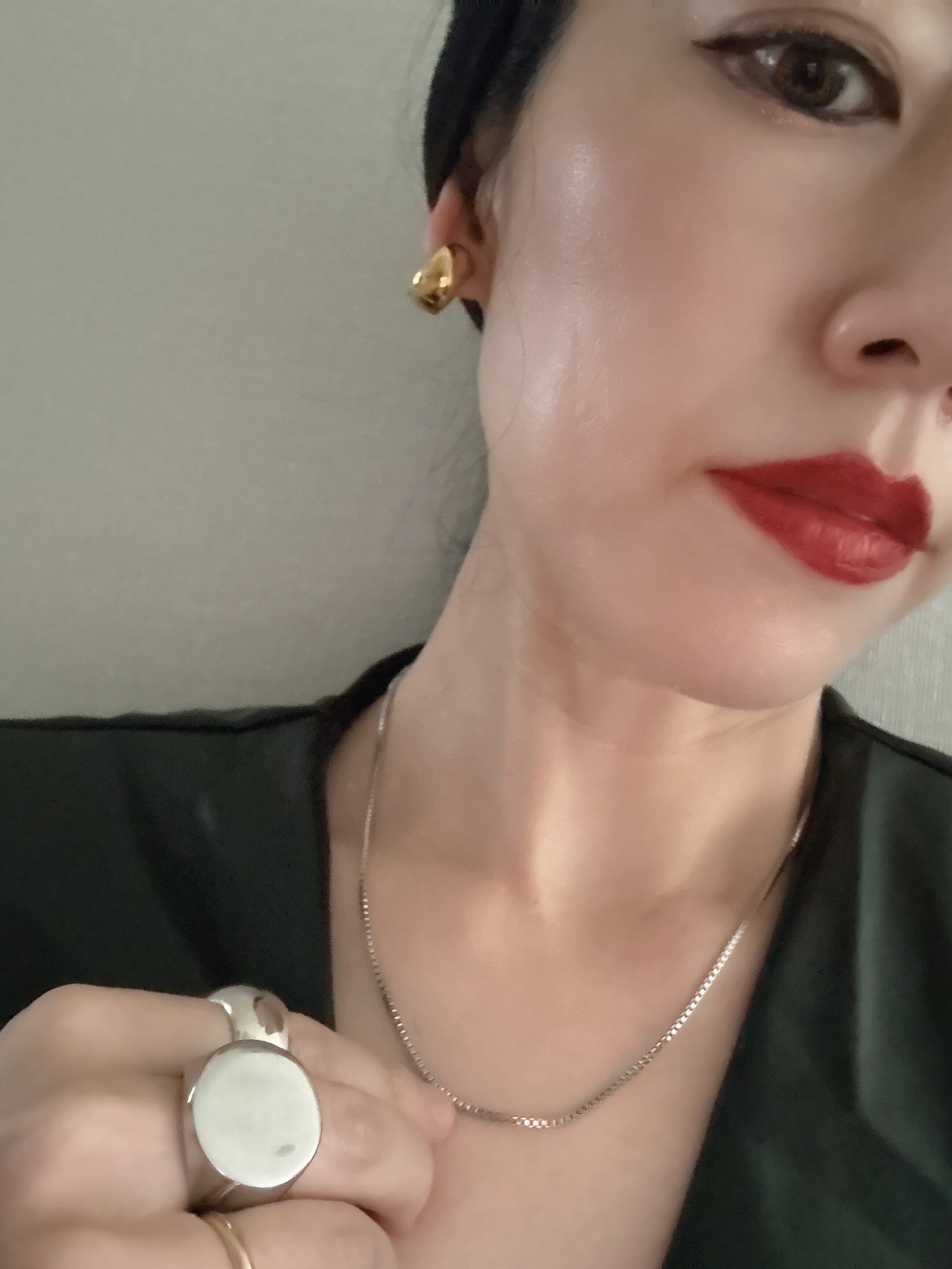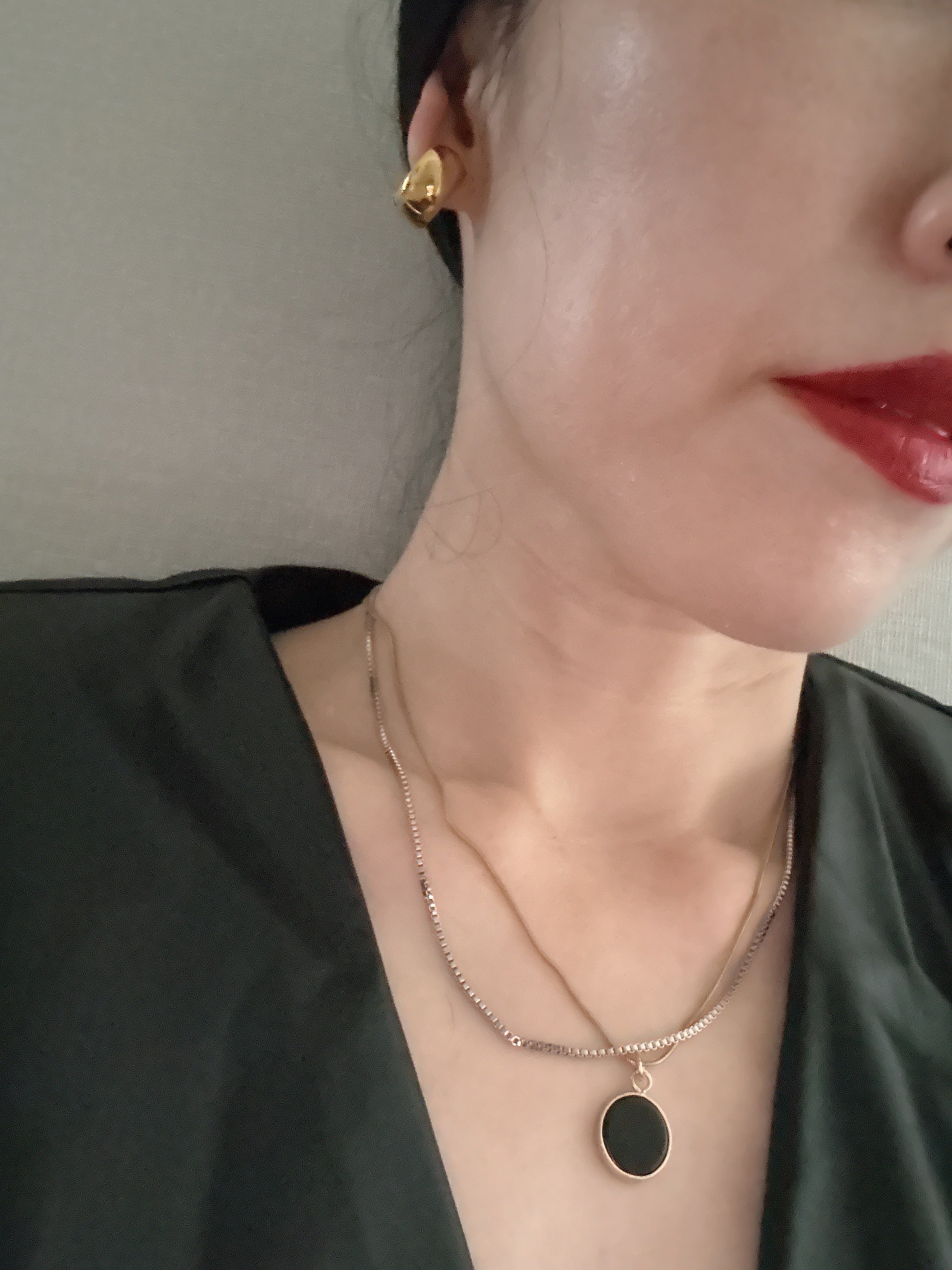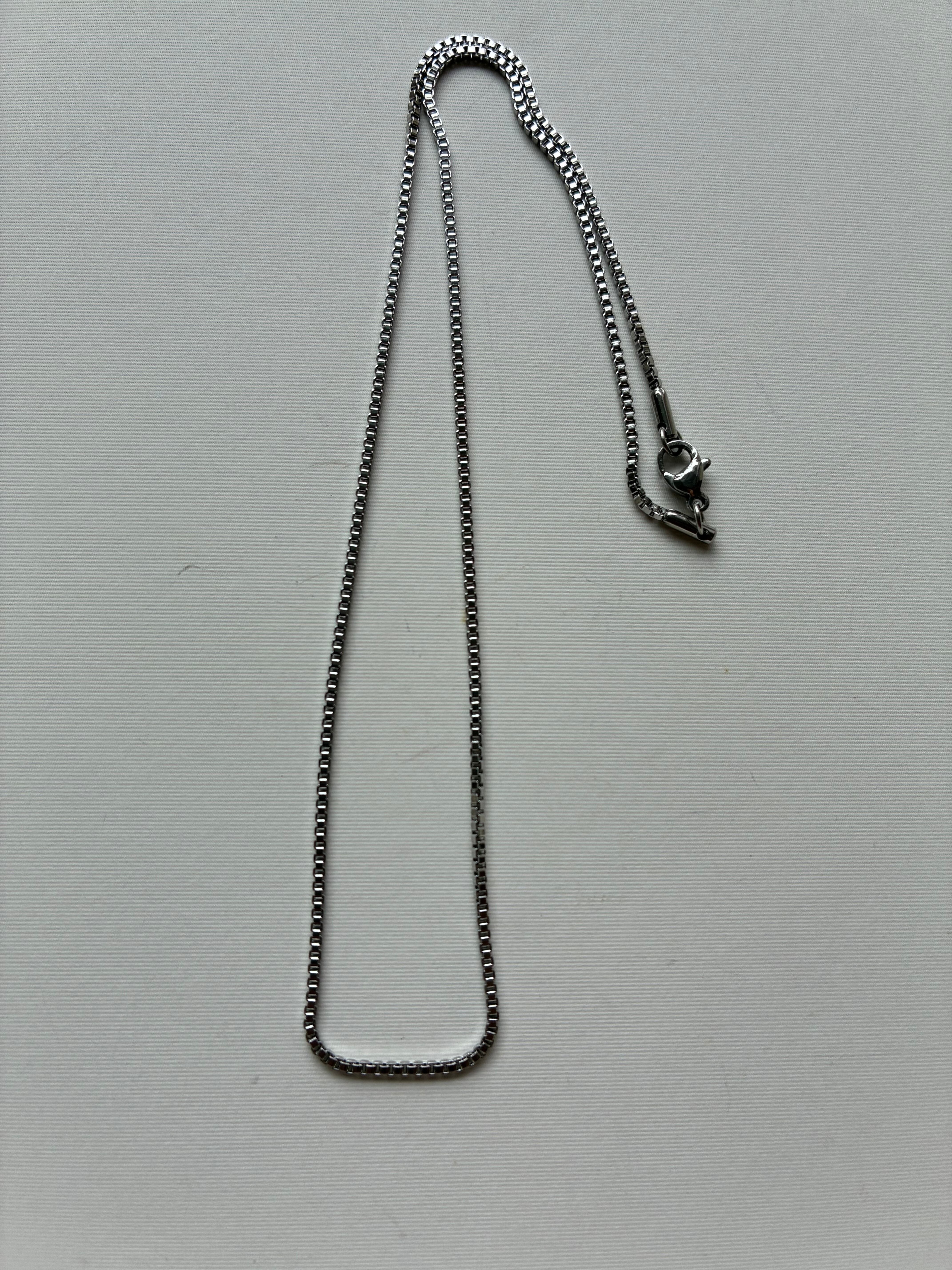 長さ約45㎝。シルバーからーでボリュームのある珍しいベネチアチェーンネックレス。シンプルながらも、鎖骨にあたり動きがあり存在感のあるアイテム。首元がより大人っぽい雰囲気になります。また、重ね付けもシックです。リングを通してアレンジも。