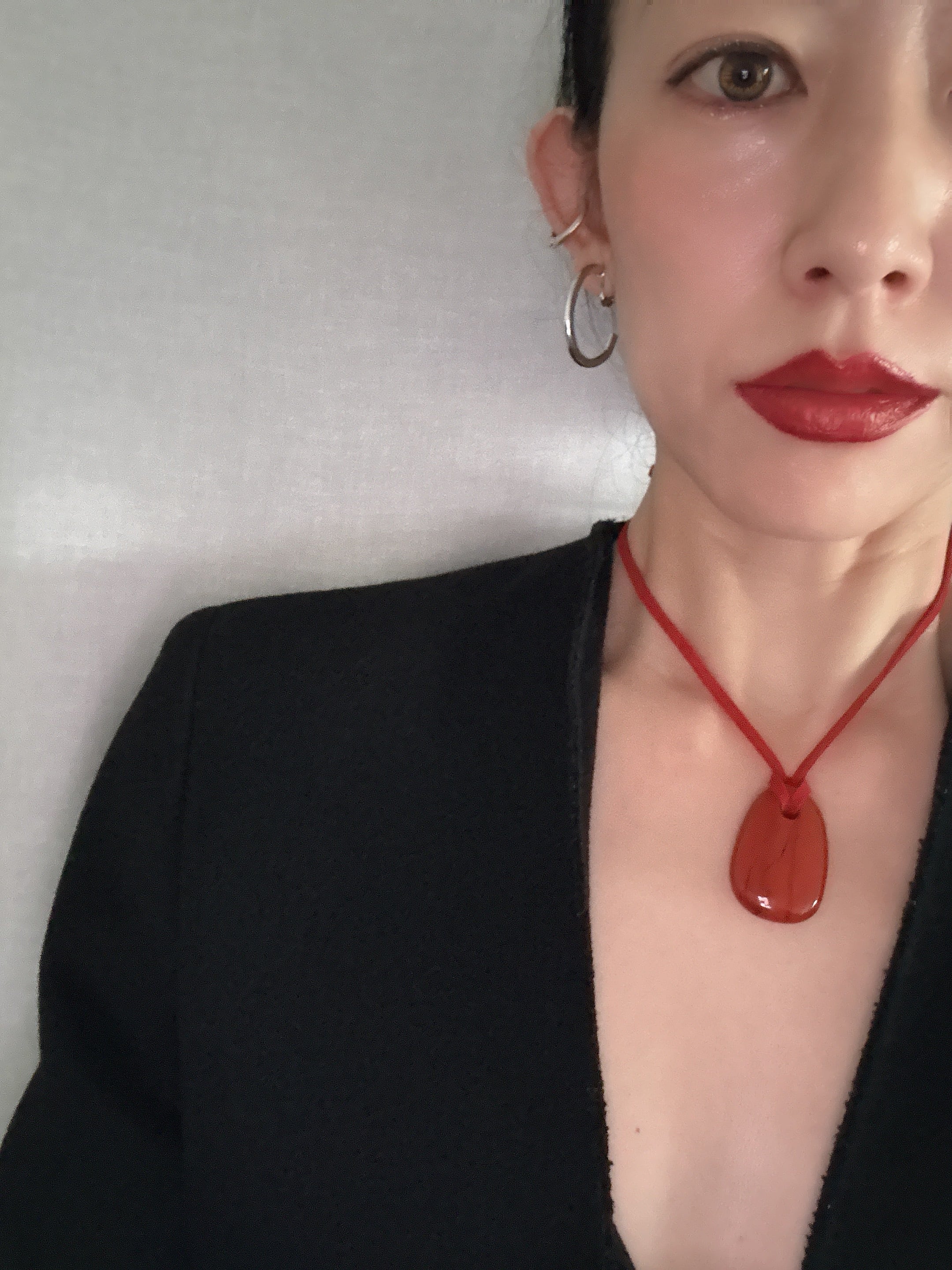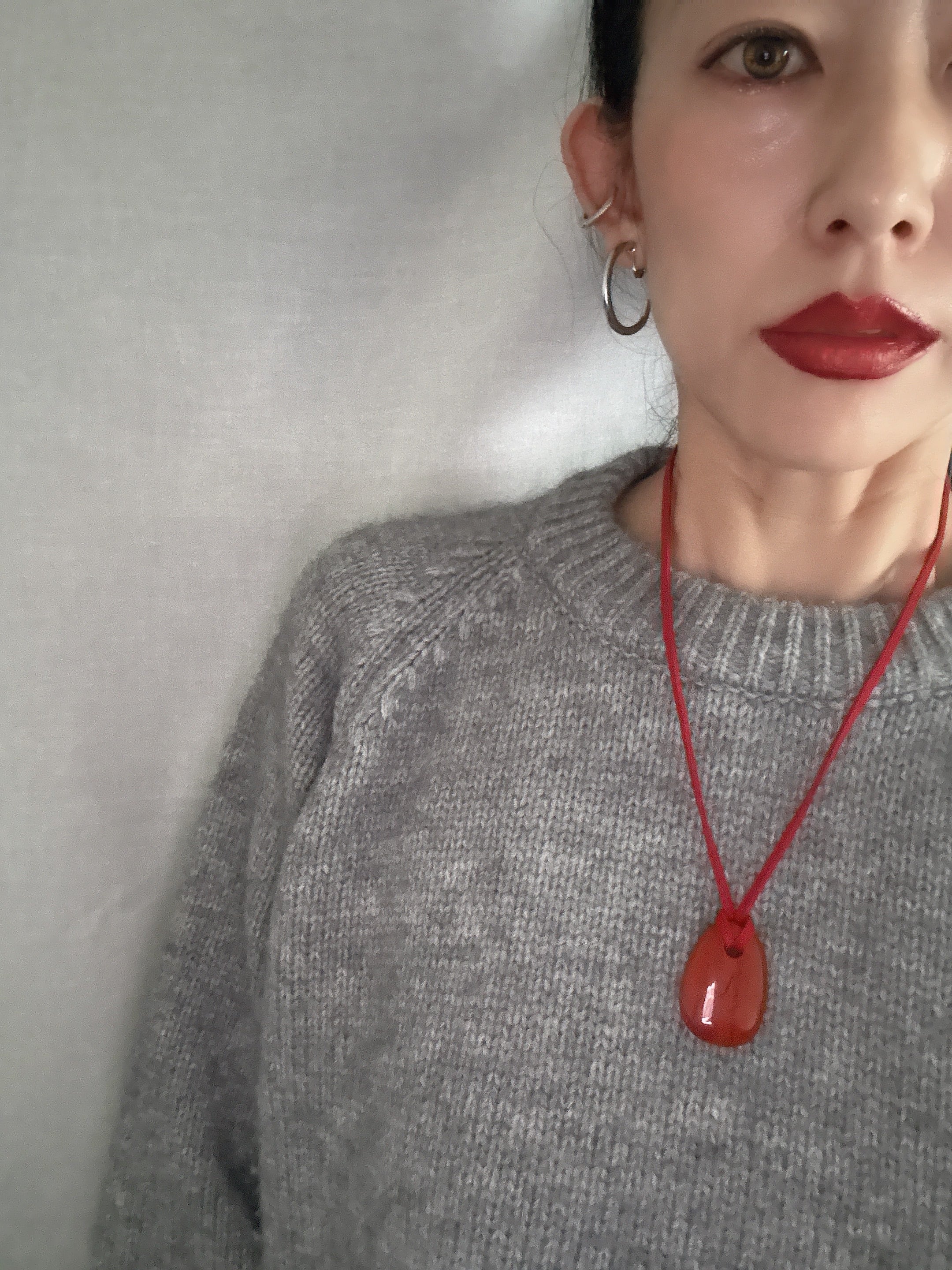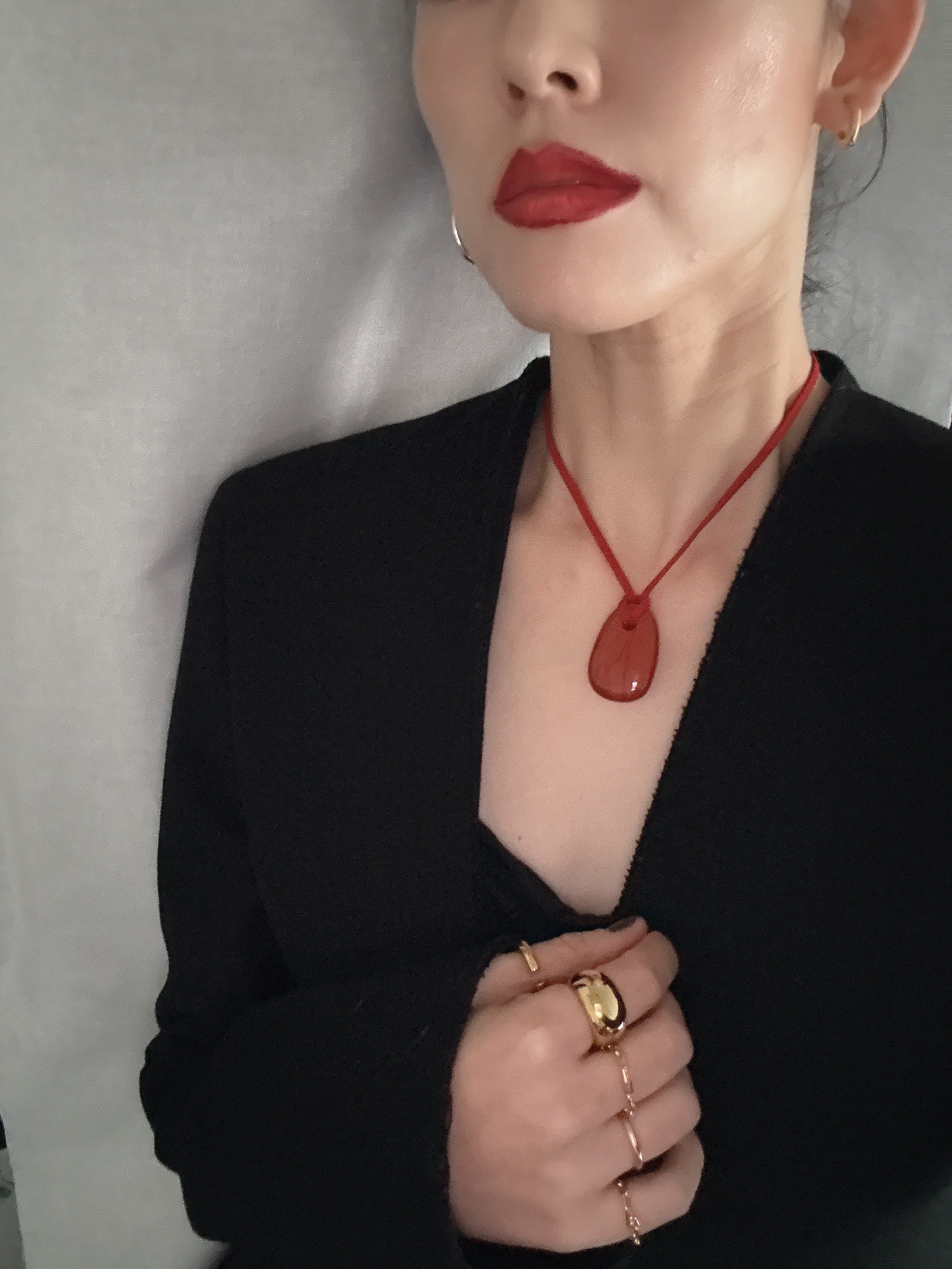 モノトーンになりがちな冬に、引き立つレッドをチョーカーにも使用しました。