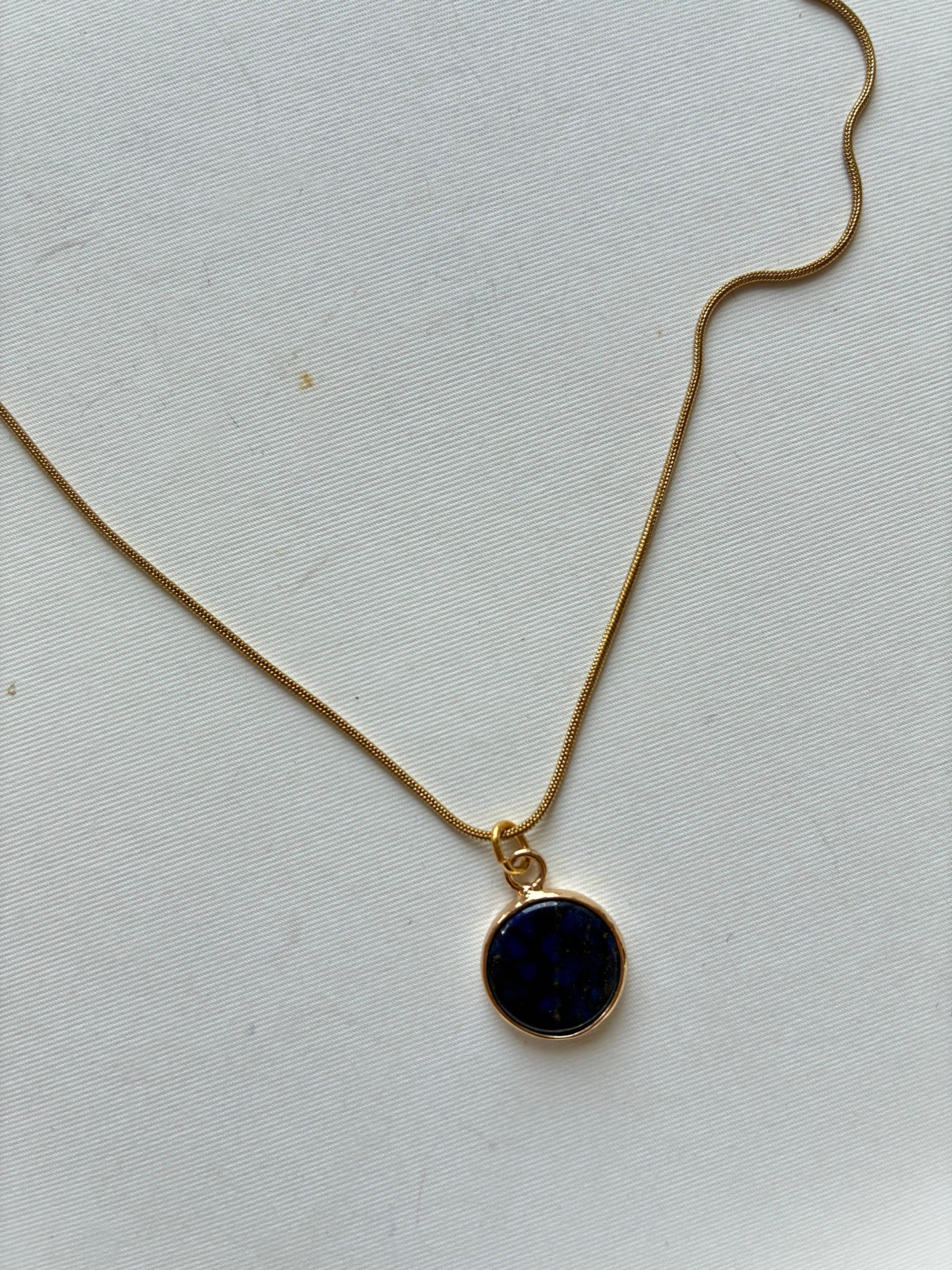 goldのネックレスにlapis lazuliのstone coin necklace。
