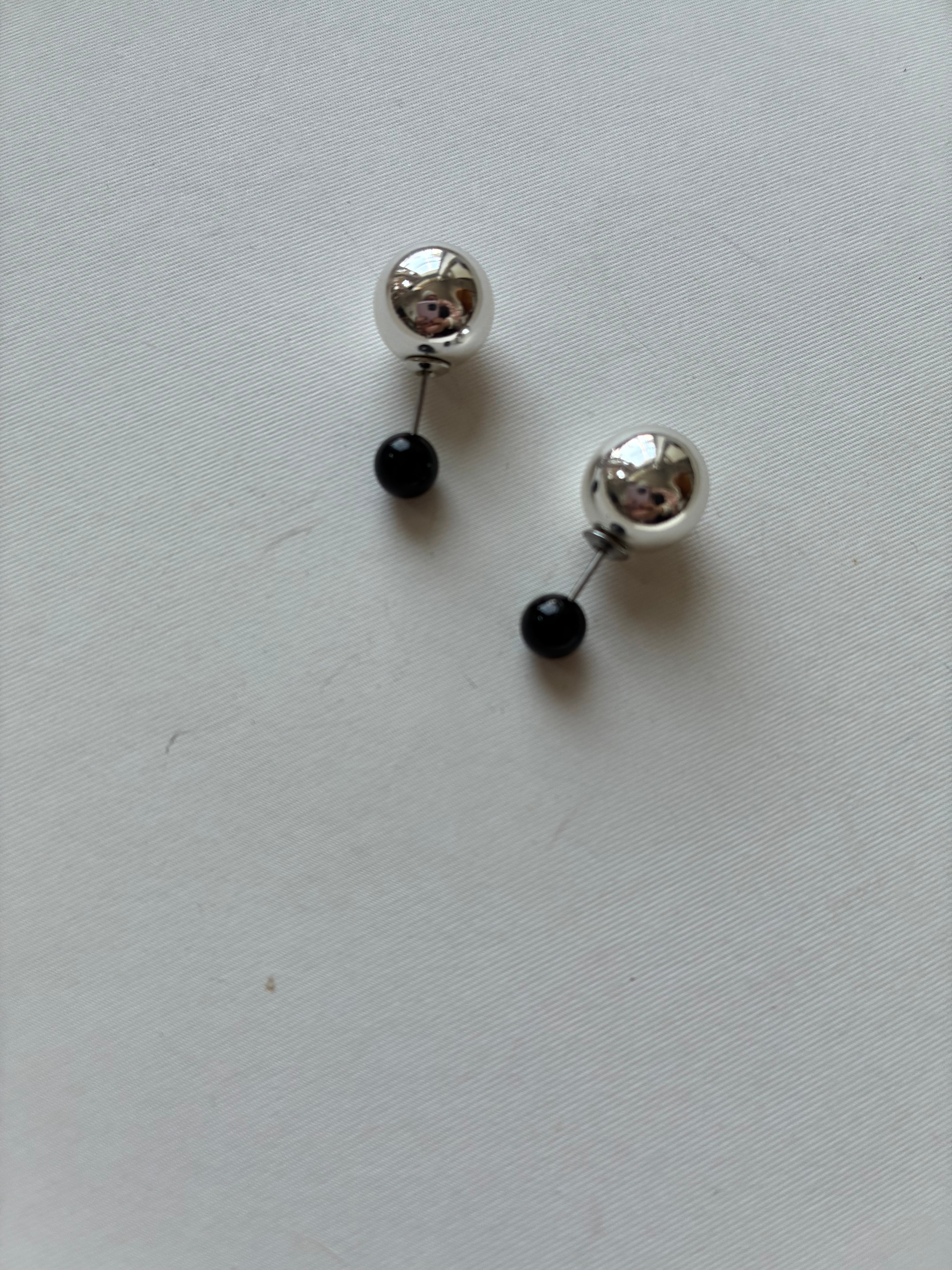 直径約8mmのonyxとgreen jadeの2色。シルバーのキャッチは14mm。軽め。キャッチを前にすることもできるので、色々組み合わせて楽しんで頂けます。