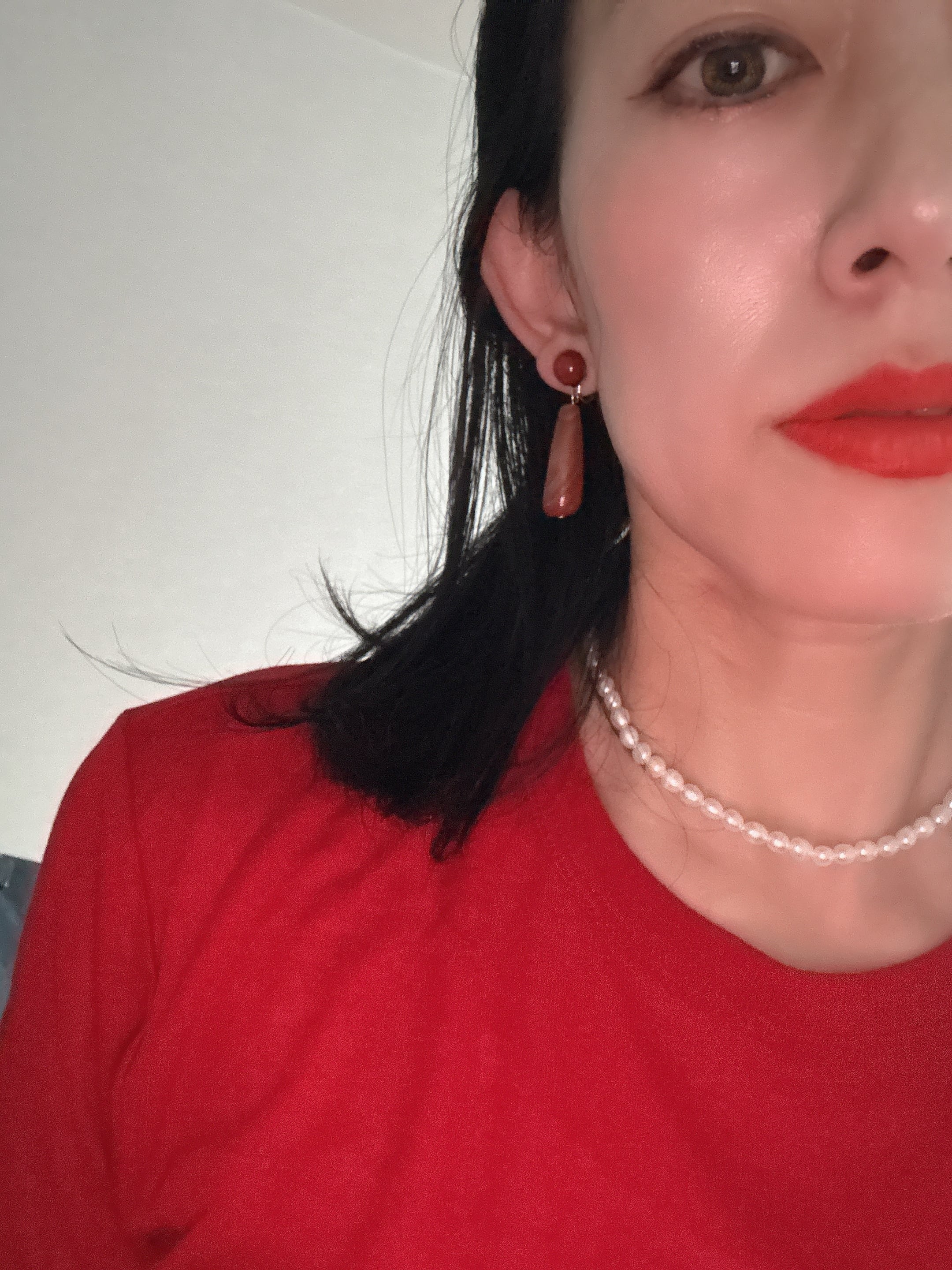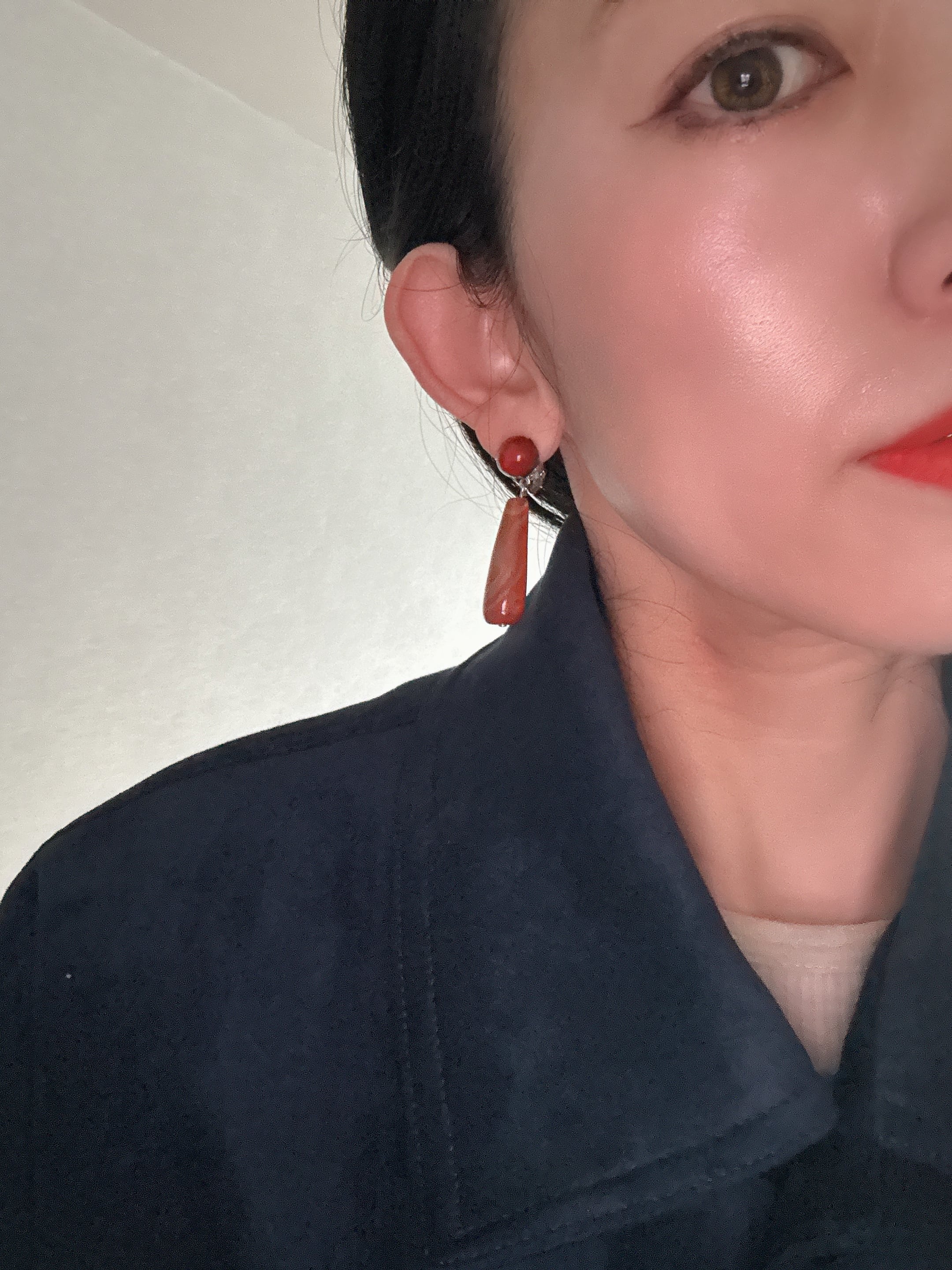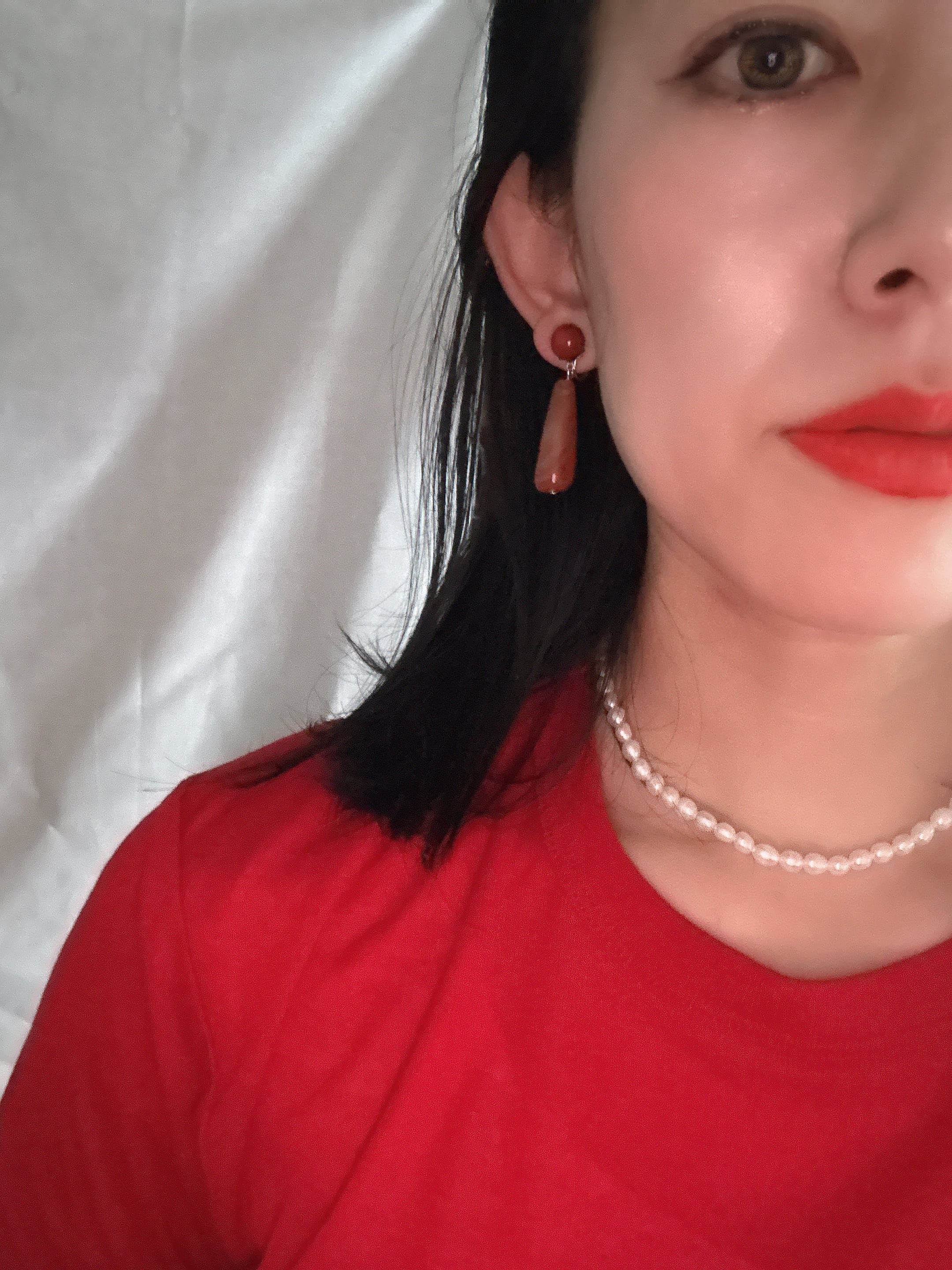 ✴︎長さ約4.5センチ。アガットストーンを使用。オレンジレッドカラーは、耳元の差し色になり、よりスタイリッシュに。これからの季節に、ぴったりのアイテム。