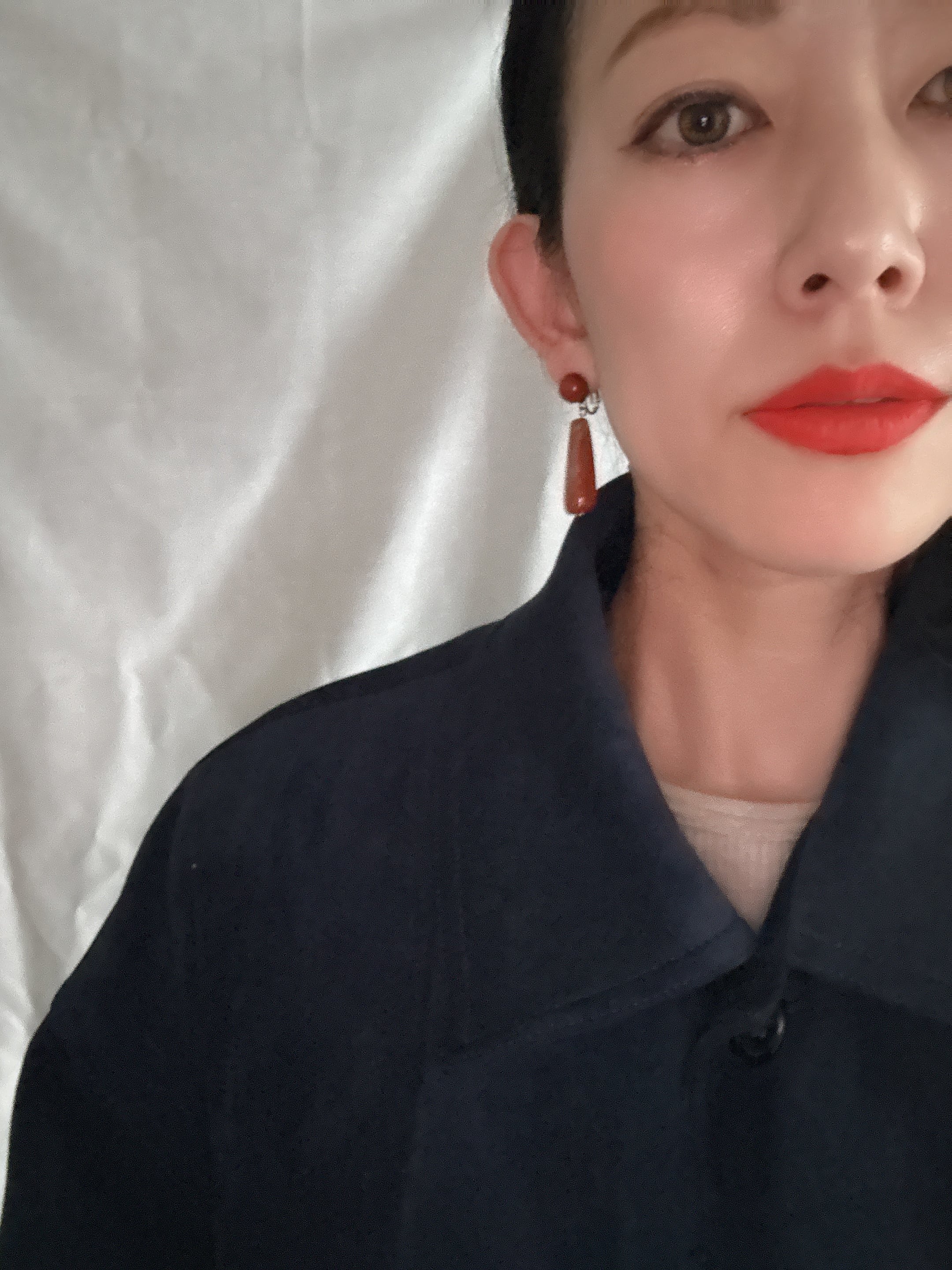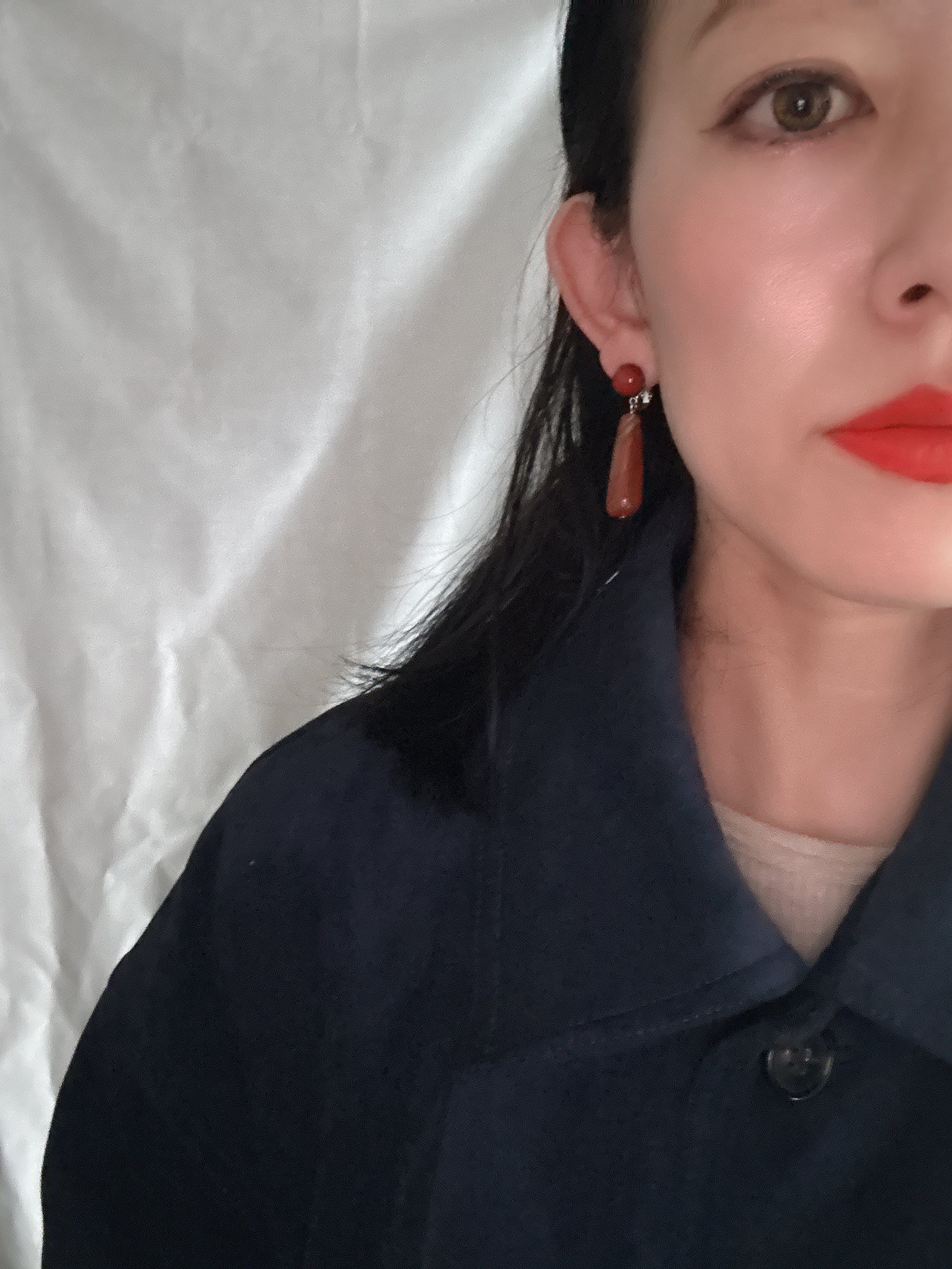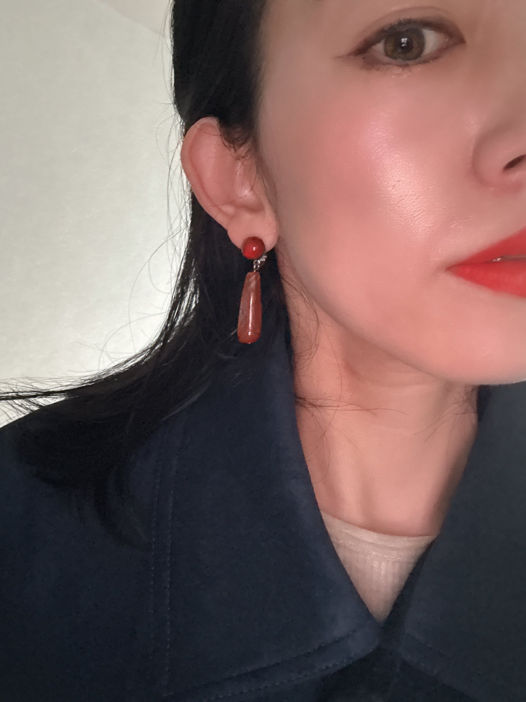 ✴︎長さ約4.5センチ。アガットストーンを使用。オレンジレッドカラーは、耳元の差し色になり、よりスタイリッシュに。これからの季節に、ぴったりのアイテム。