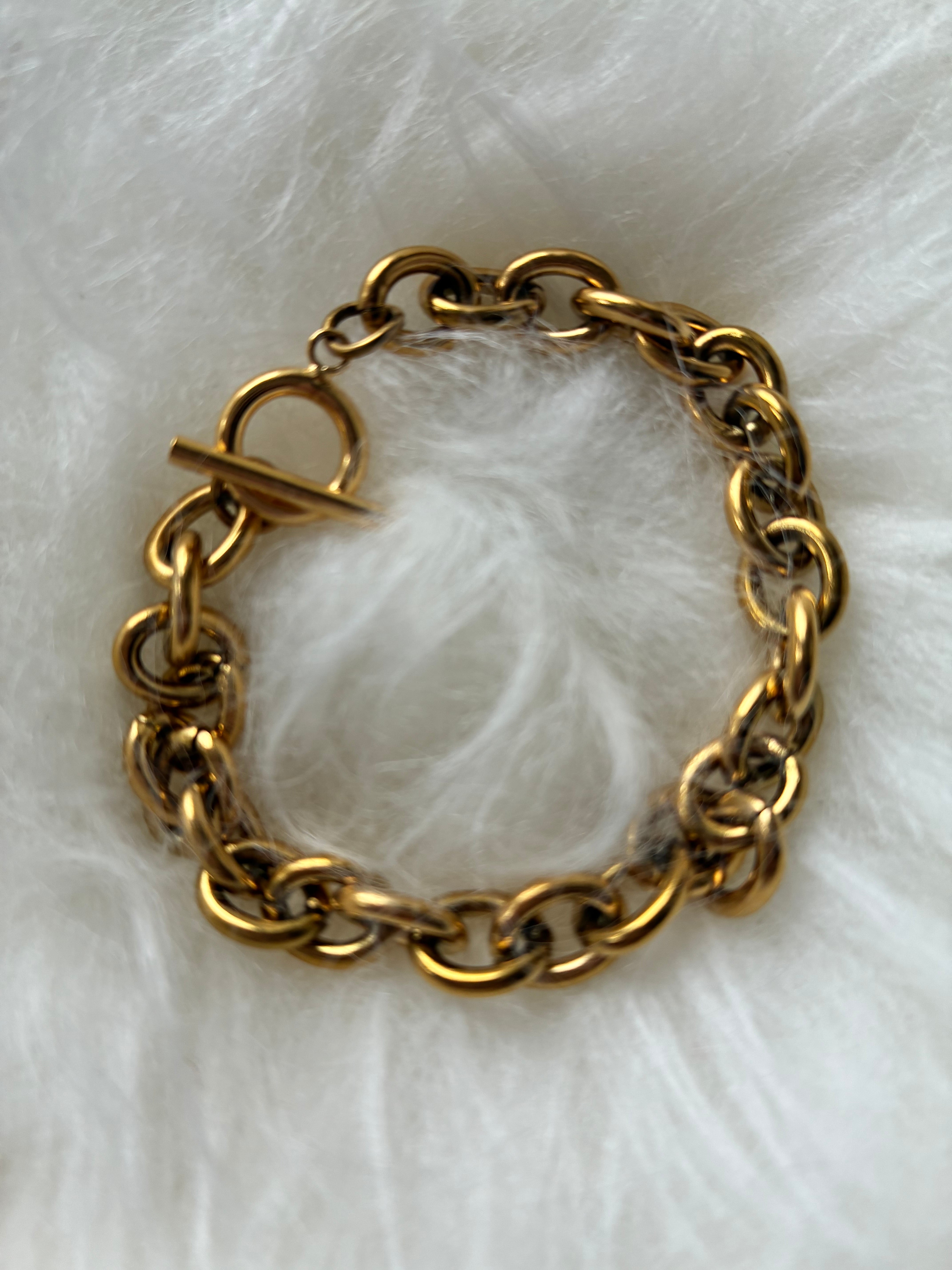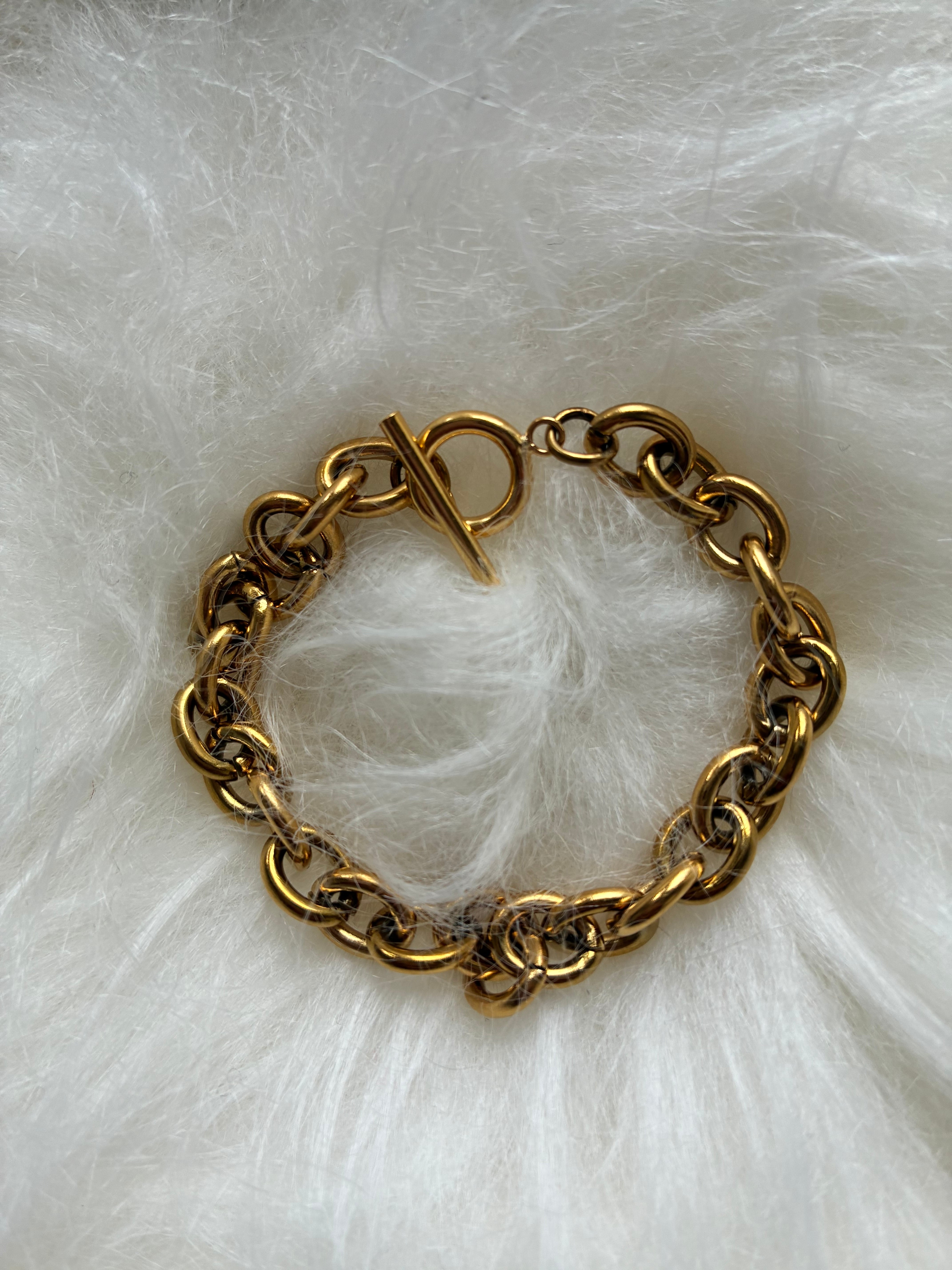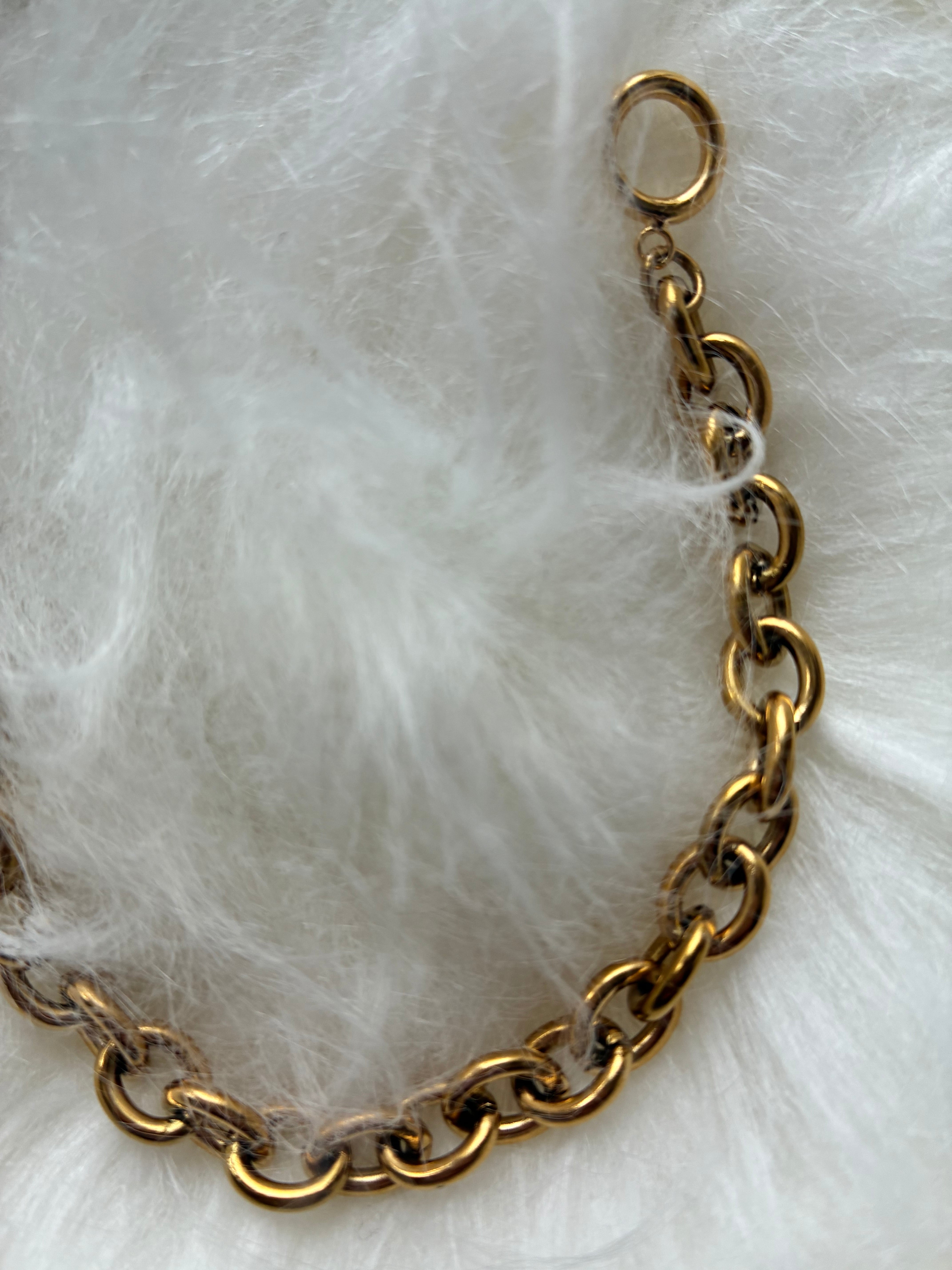 ✴︎ゴールドの適度な存在感のあるブレスレット。ラグジュアリーな雰囲気もあり、春先の手首のポイントに。