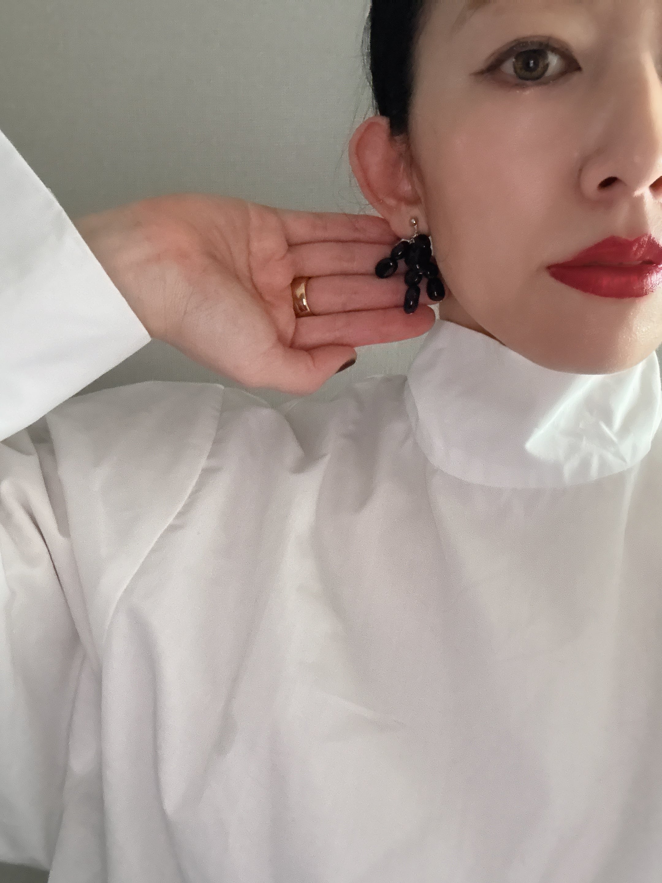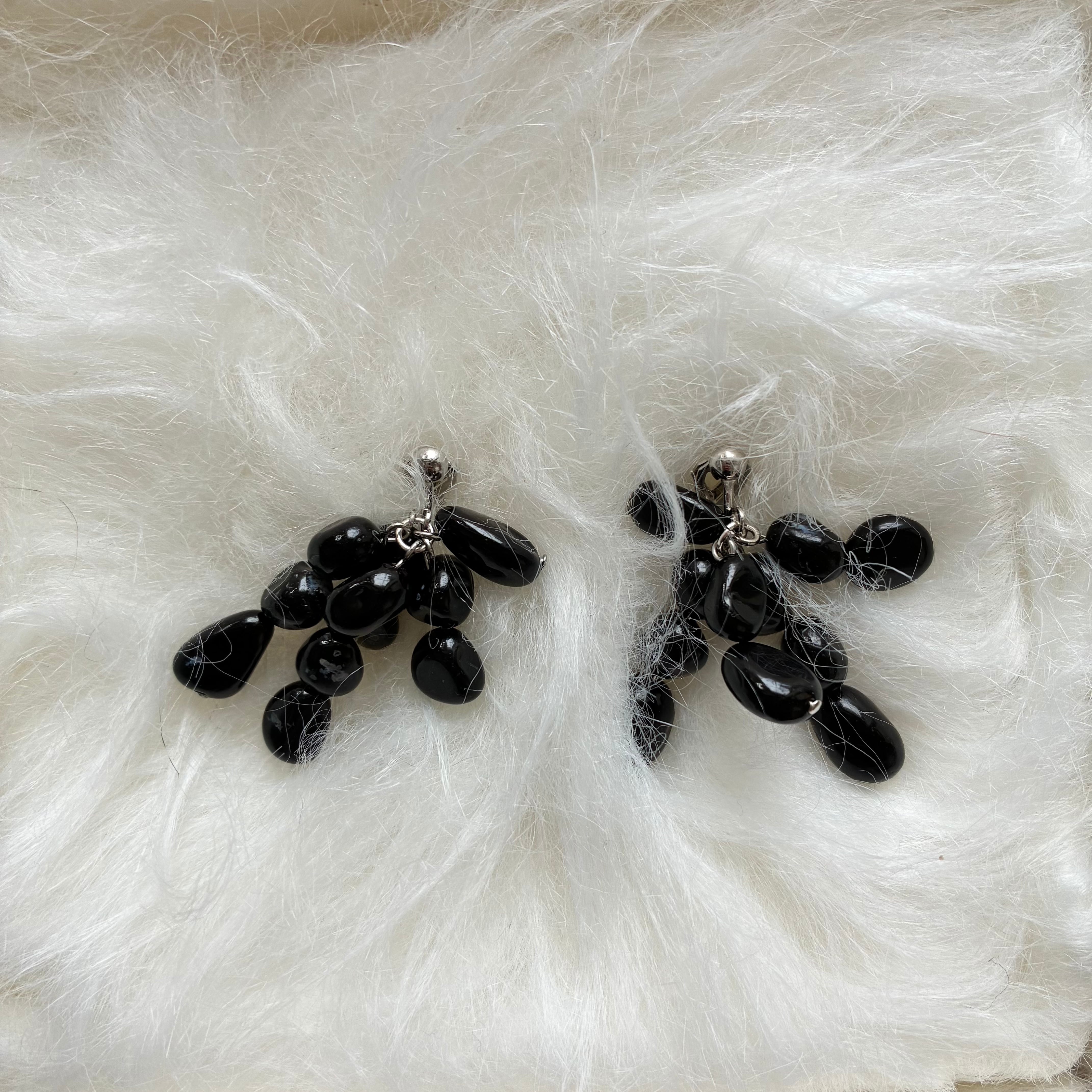 Blackが引き立つオニキスのピアス。