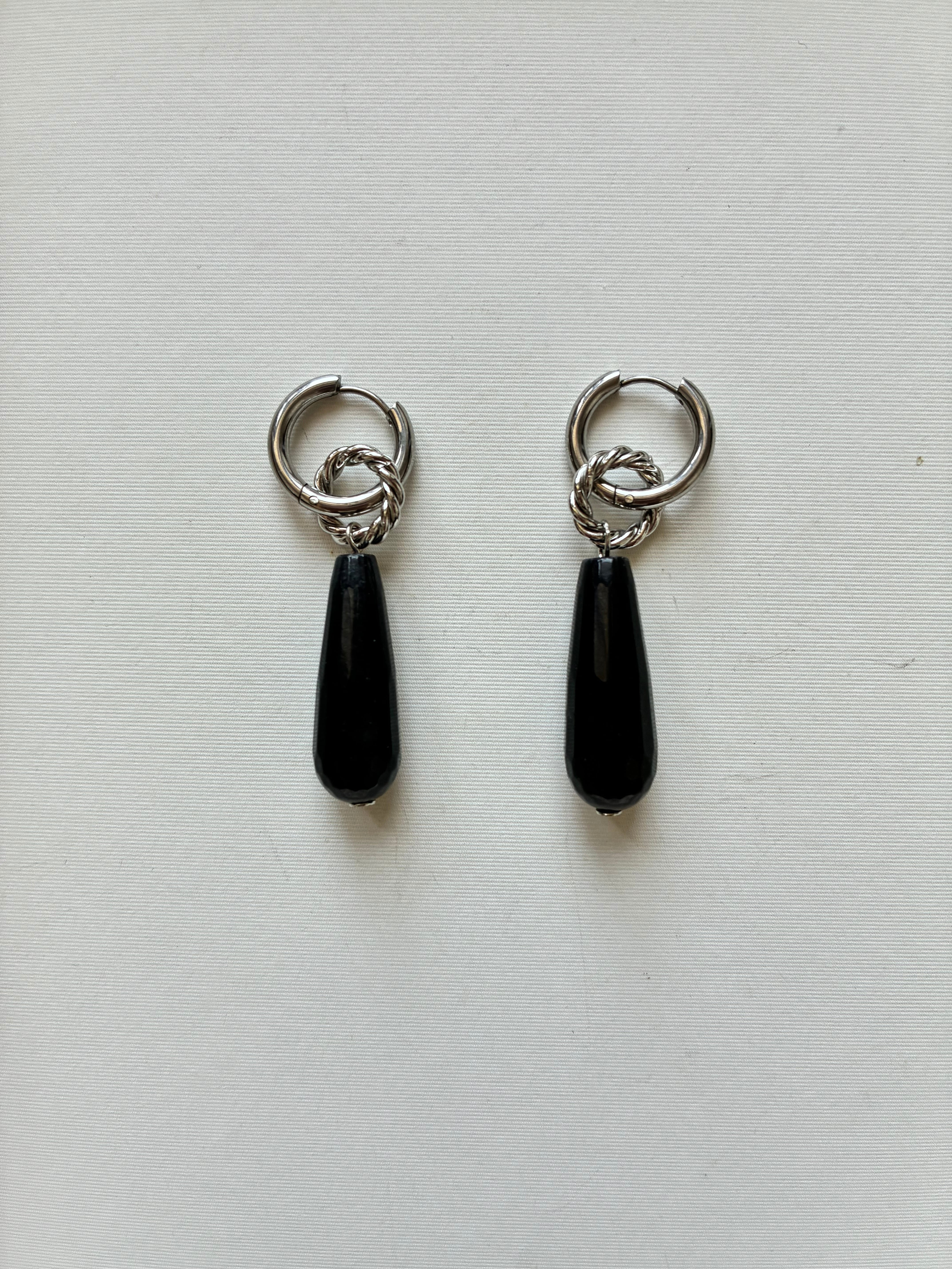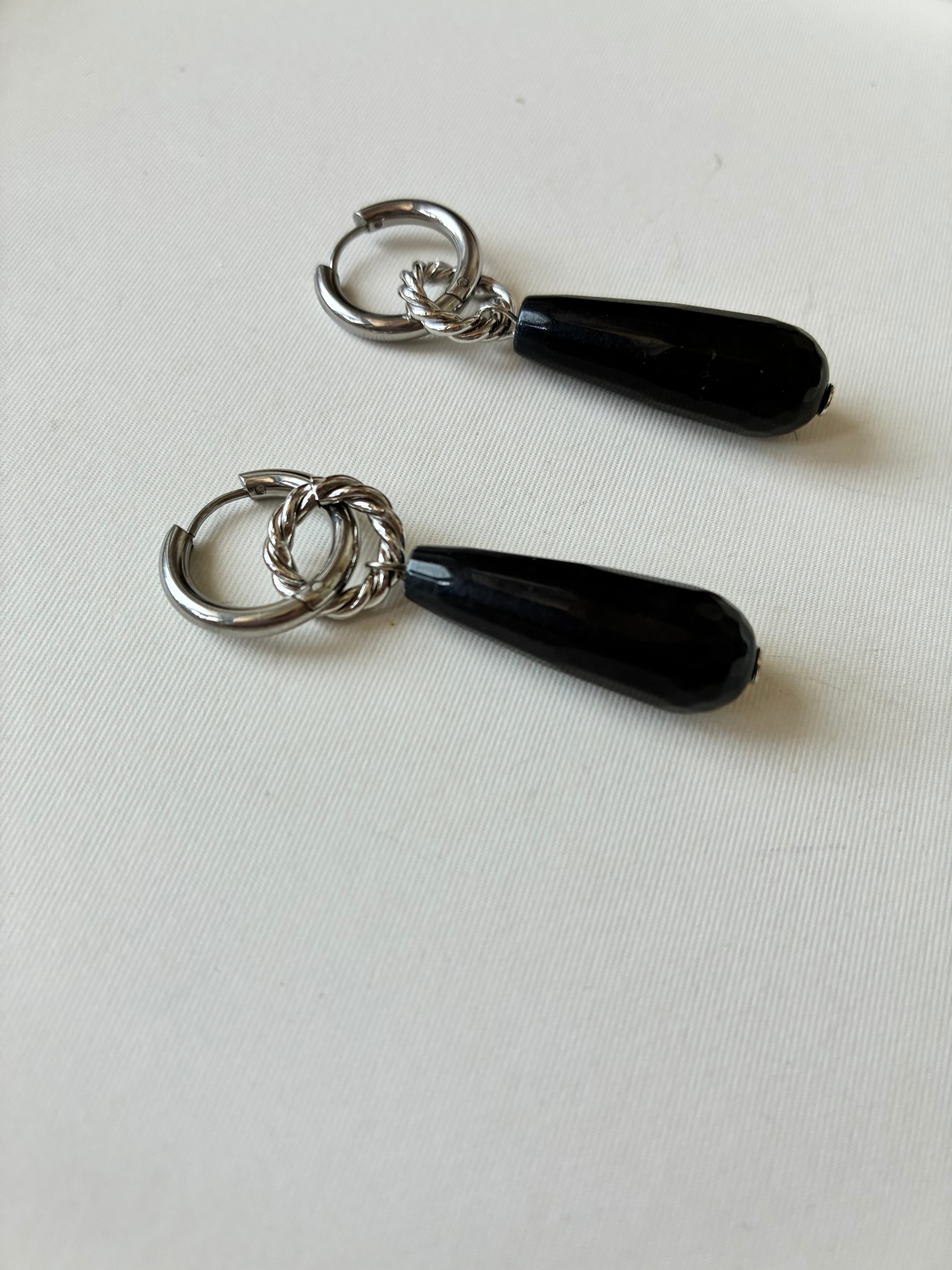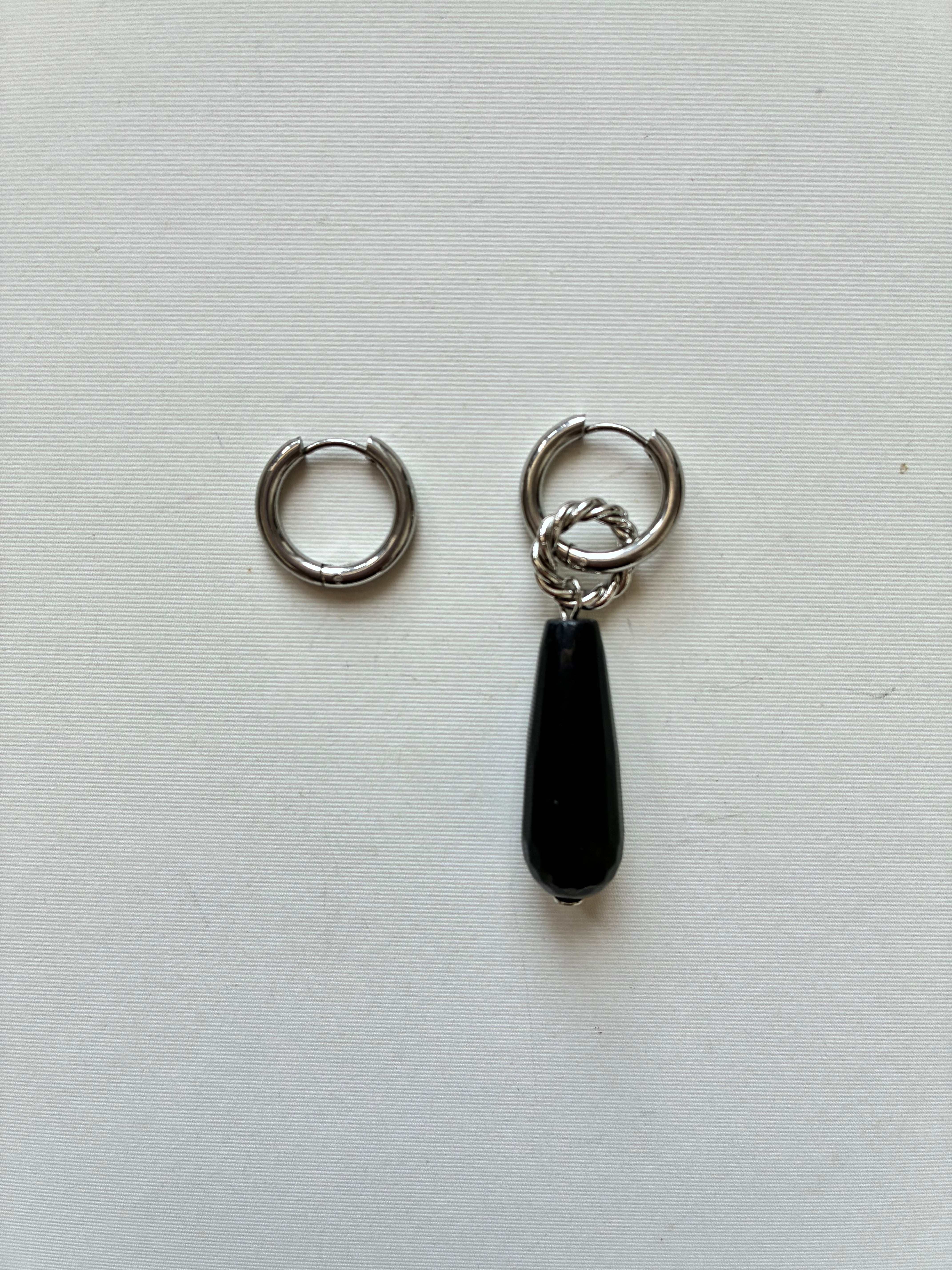 Blackとシルバーカラーが引き立つオニキスのイヤーアイテム。