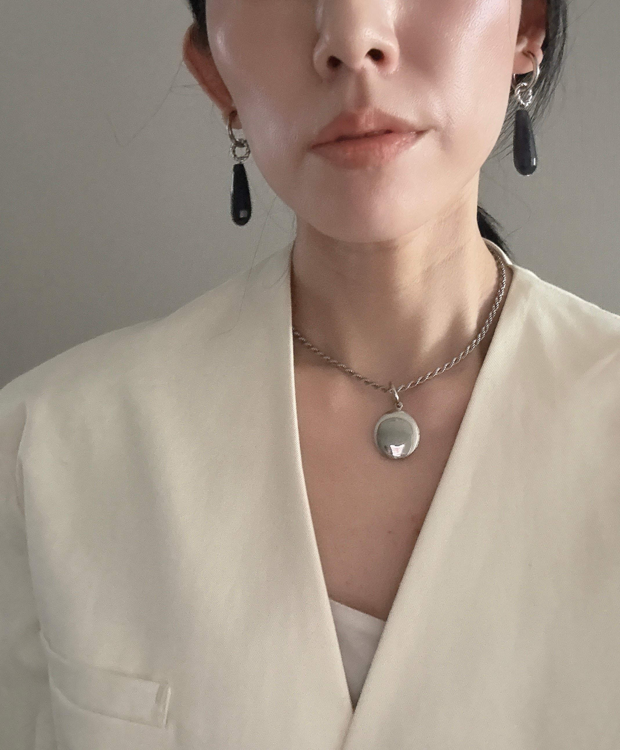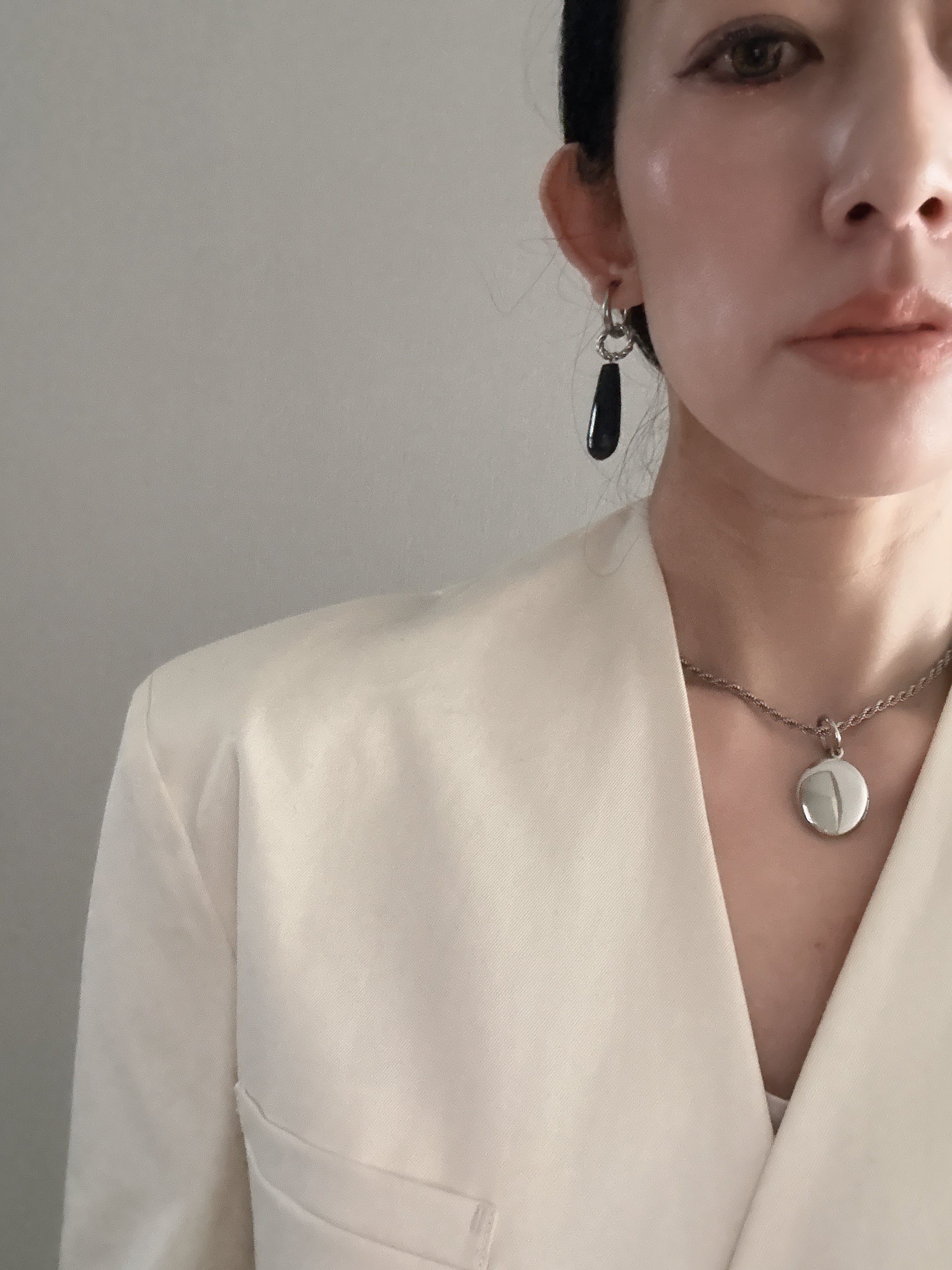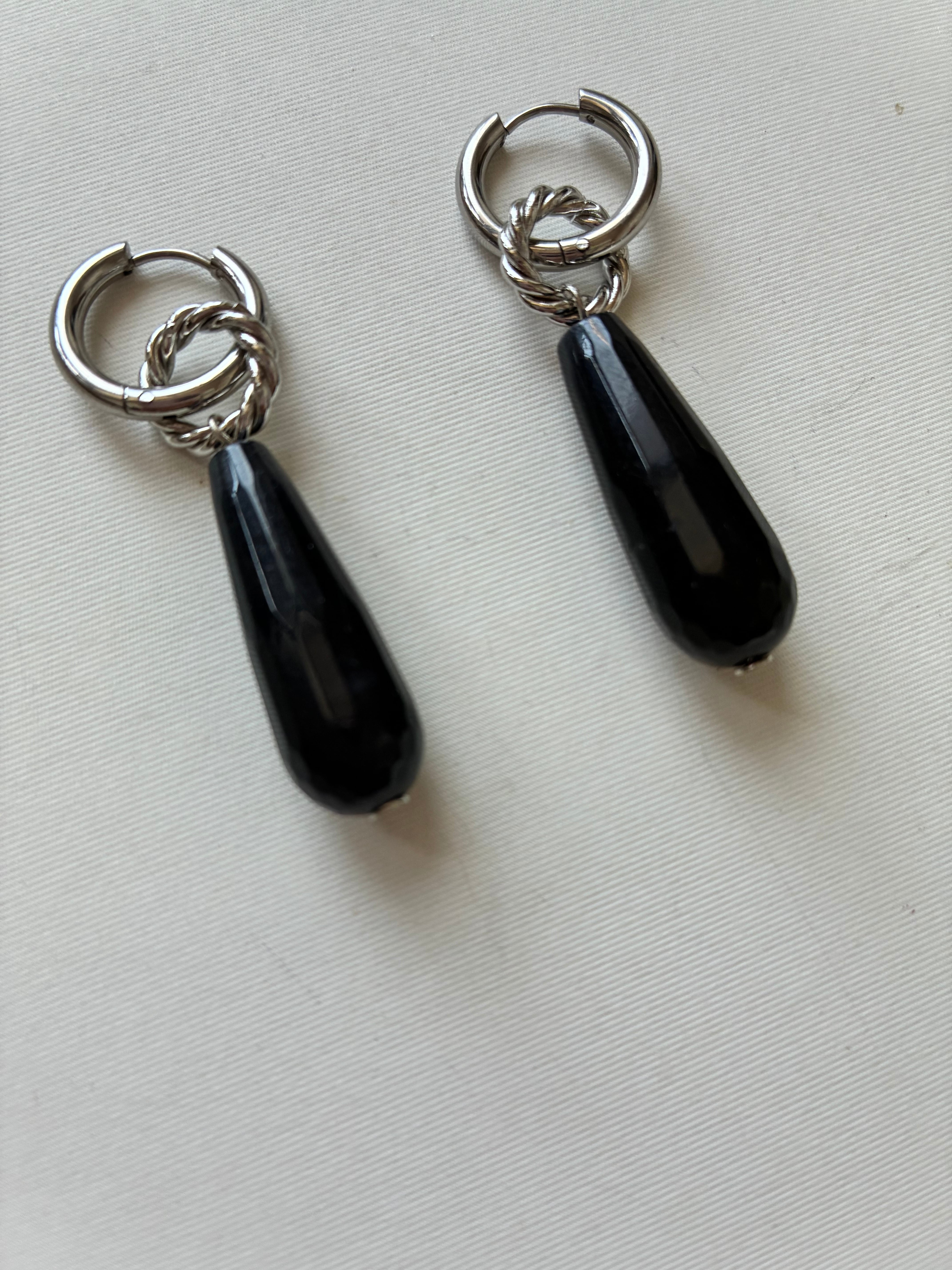 Blackとシルバーカラーが引き立つオニキスのイヤーアイテム。
