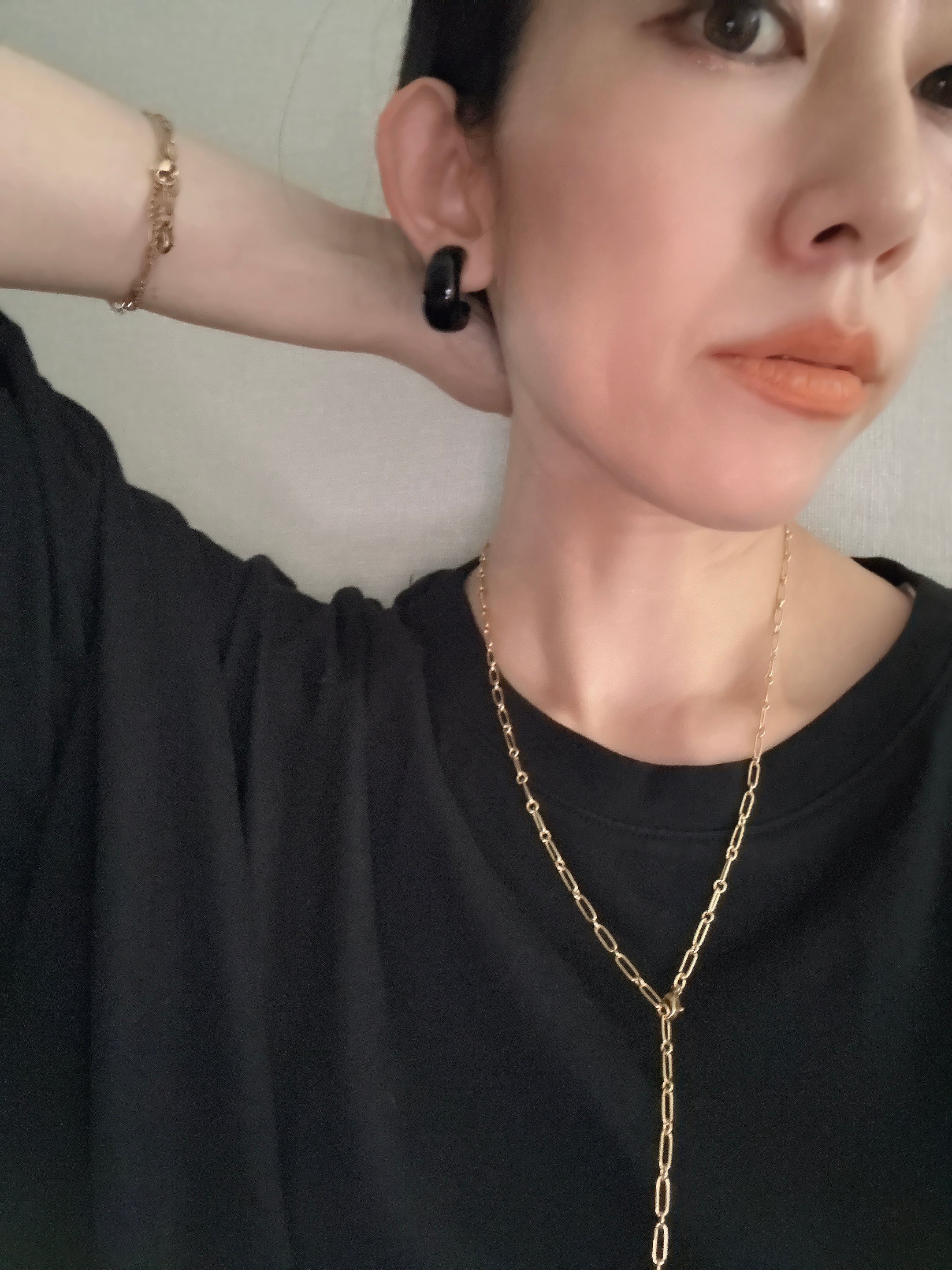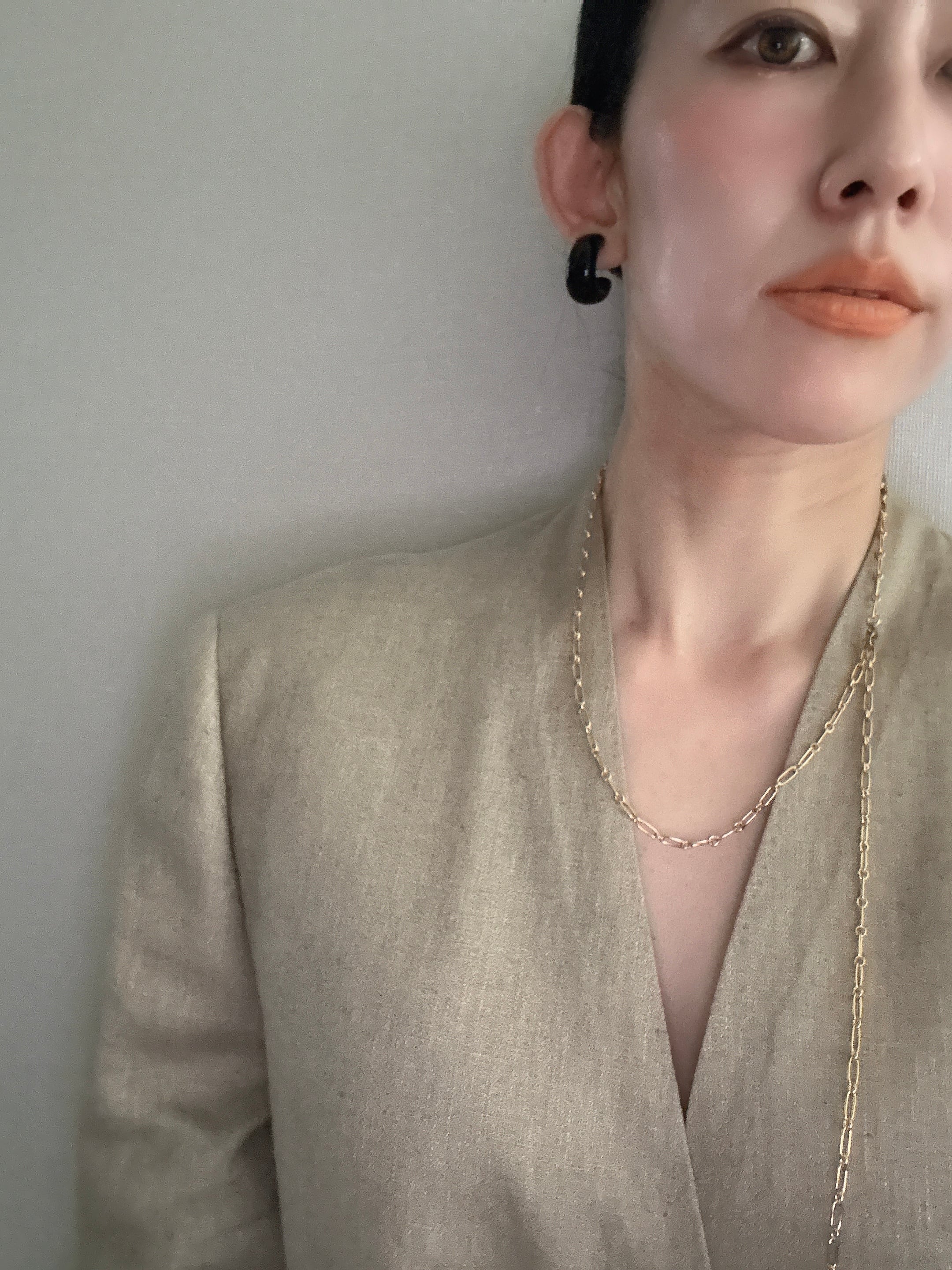 好きな長さにできて、チェーンの垂らした部分を背中に持ってきたり、前に持ってきたりと色々アレンジができます。