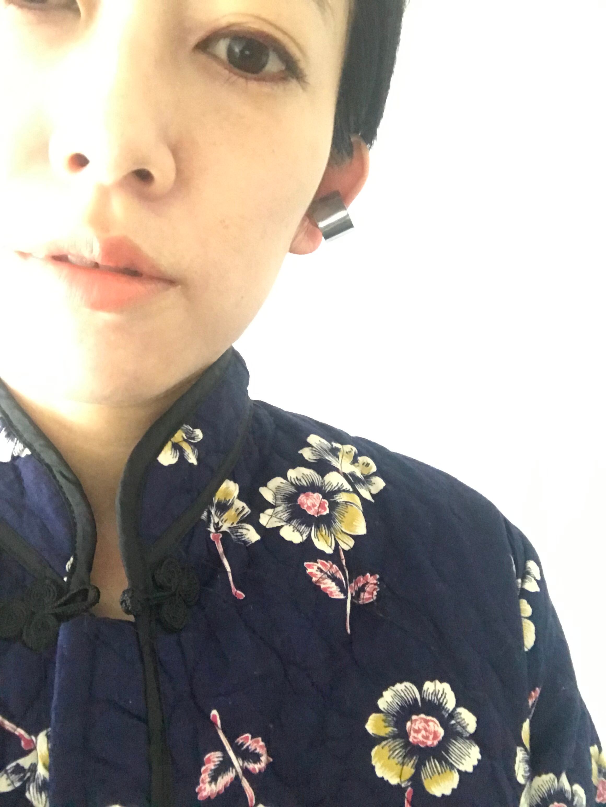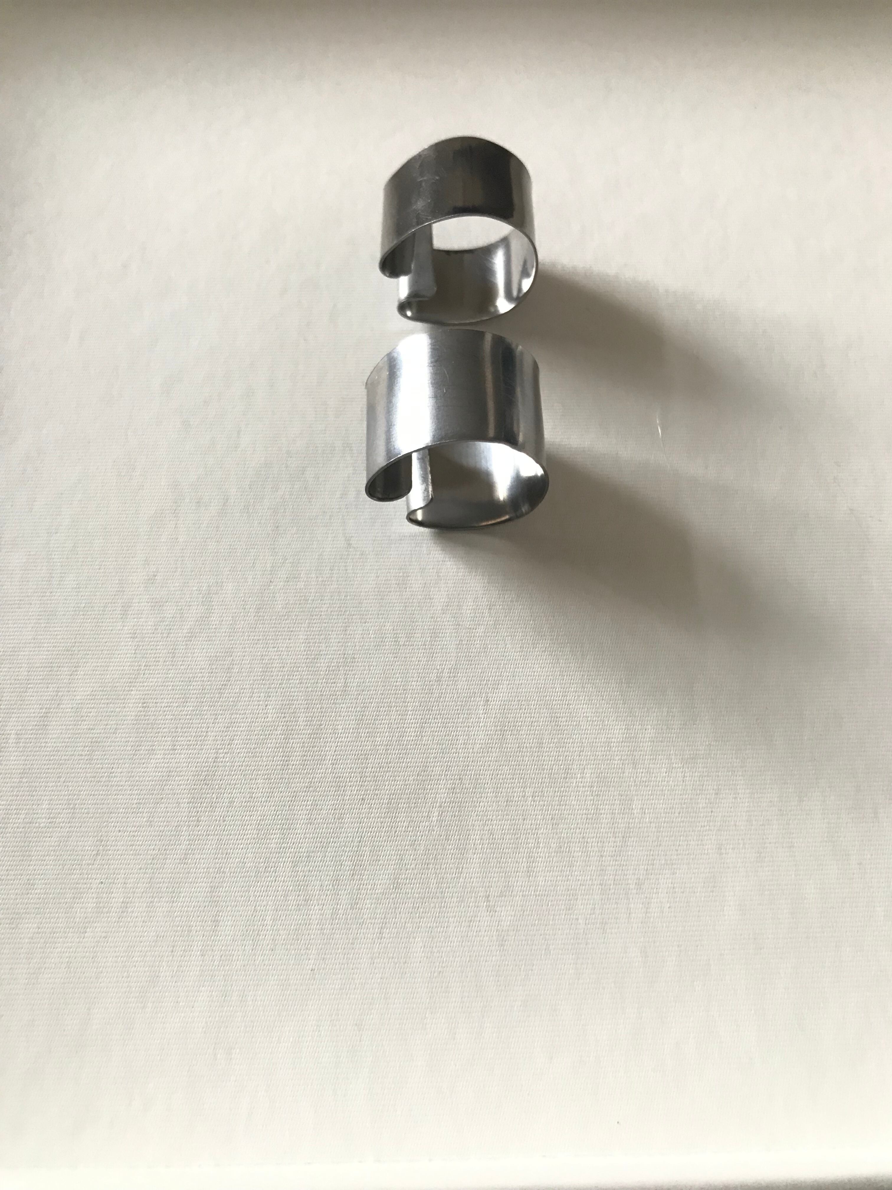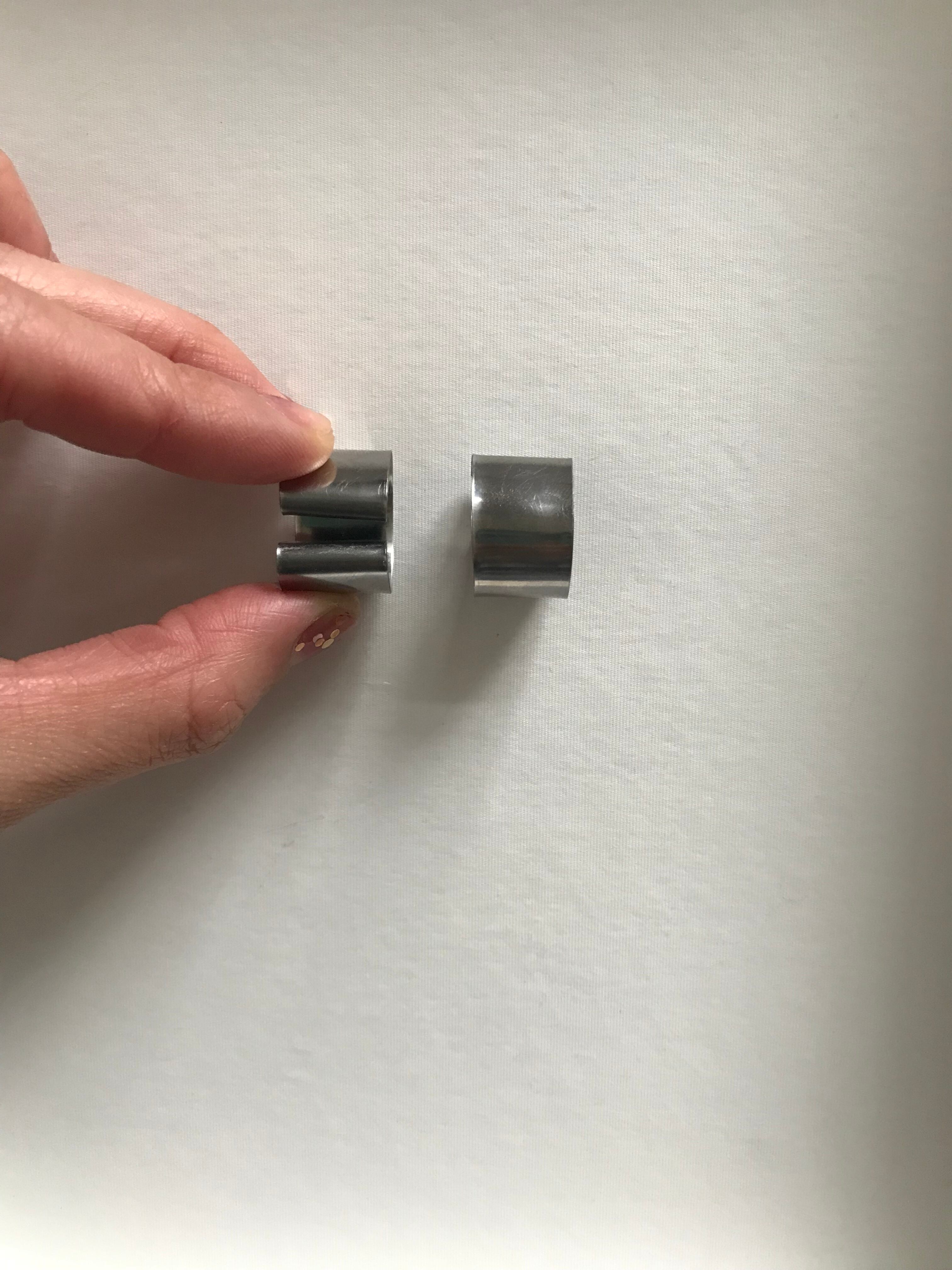 *イヤーサンド。幅1.2㎝。直径約1.6㎝。ステンレスシルバー。自分で調整可能なので、イヤーカフのようにも使用できます。Londonと同型。