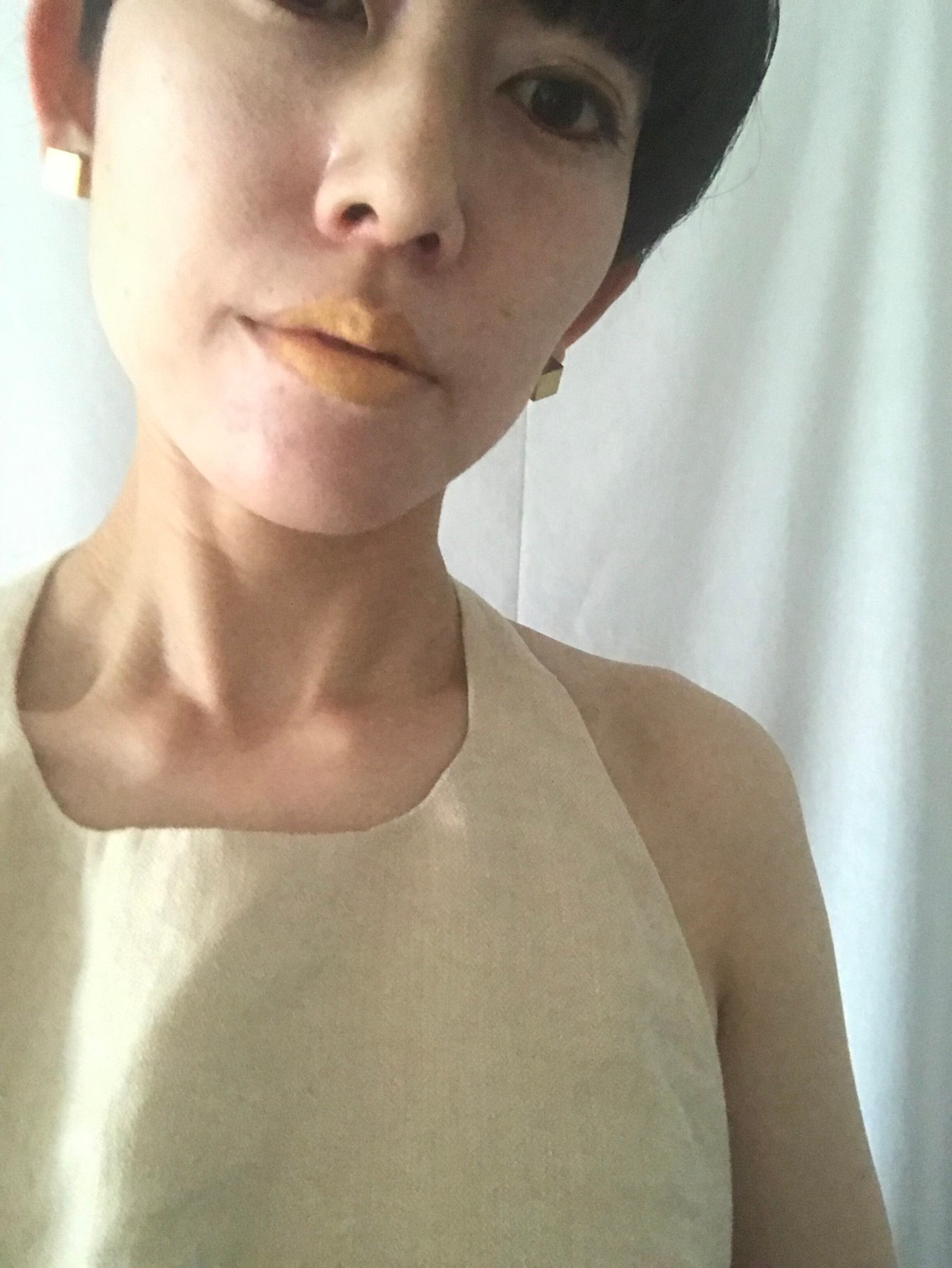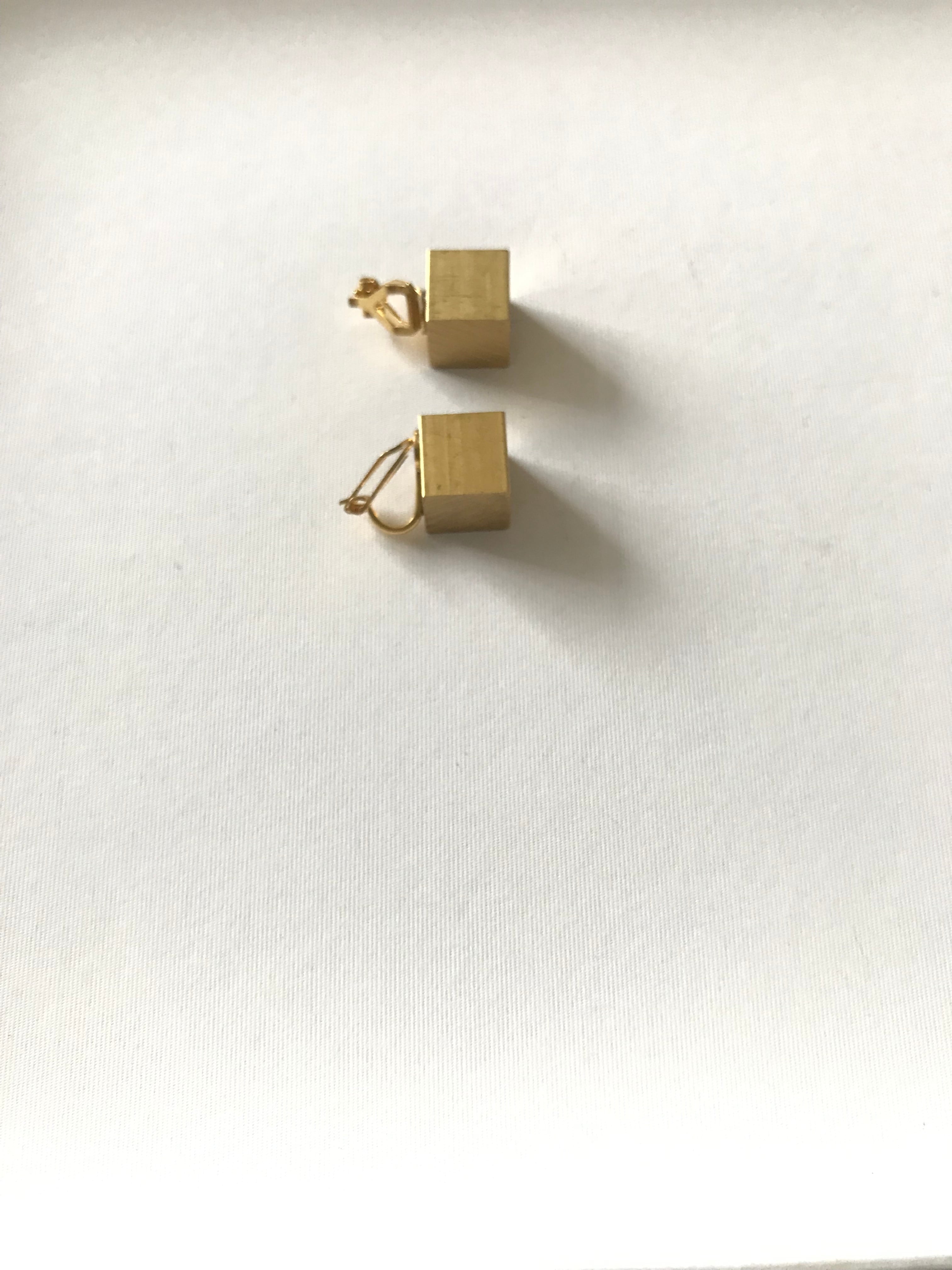 *真鍮。直径1㎝の正方形。重さがある為、耳たぶが薄い方は、お知らせ下さい。