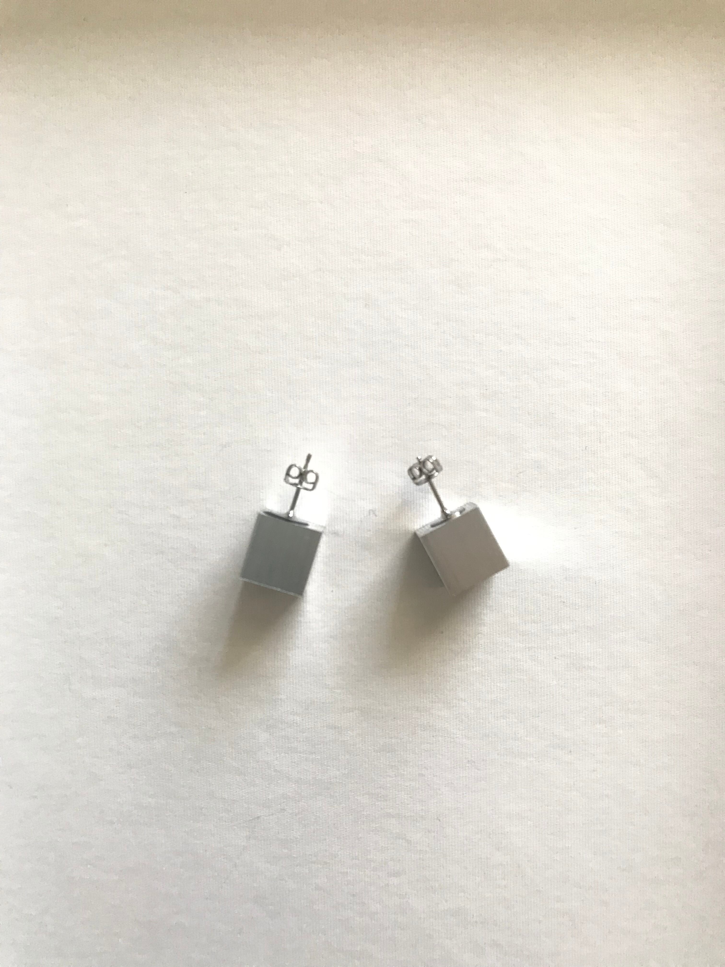 *1㎝×1㎝。軽め。くすんだシルバーカラー。