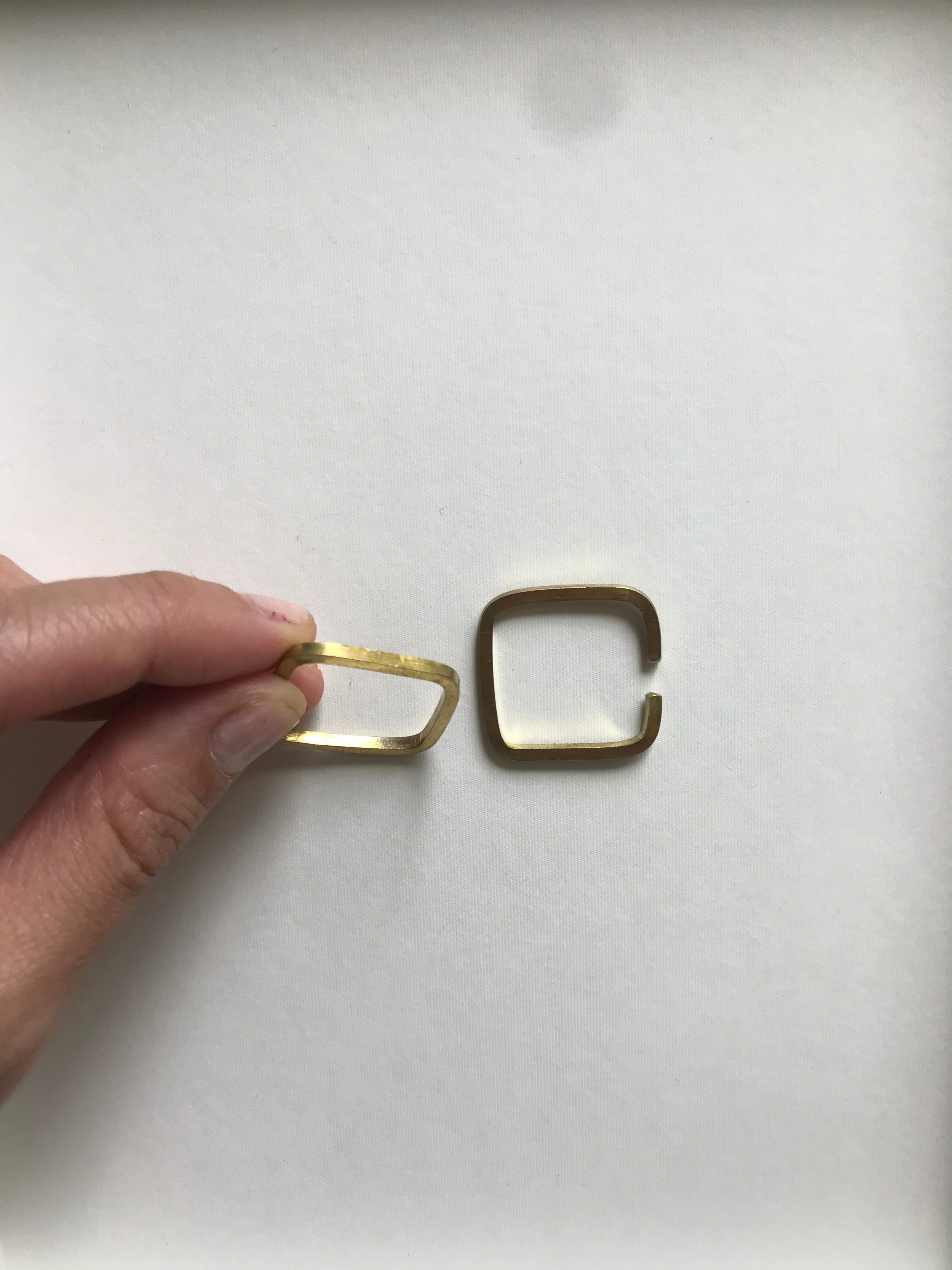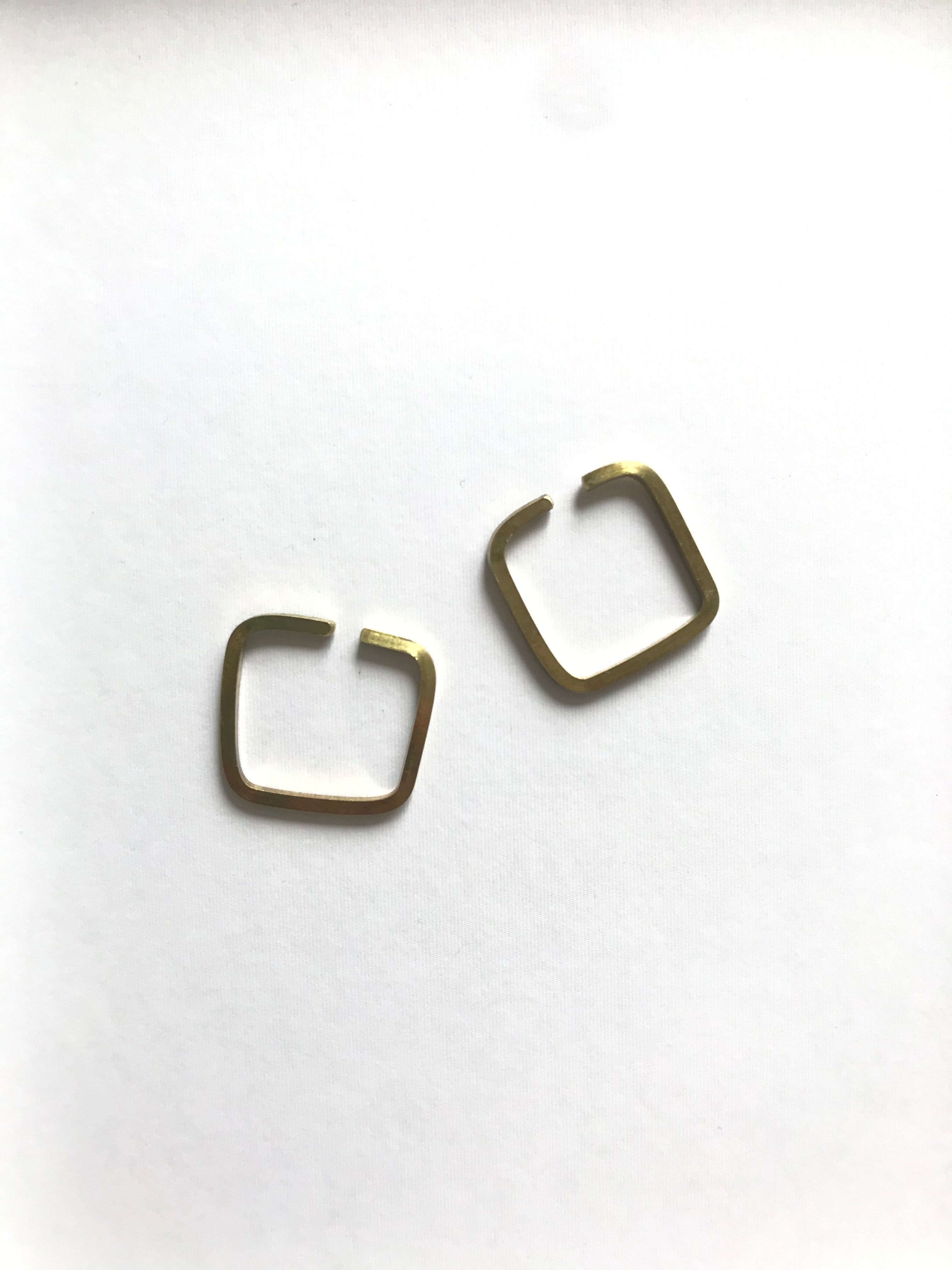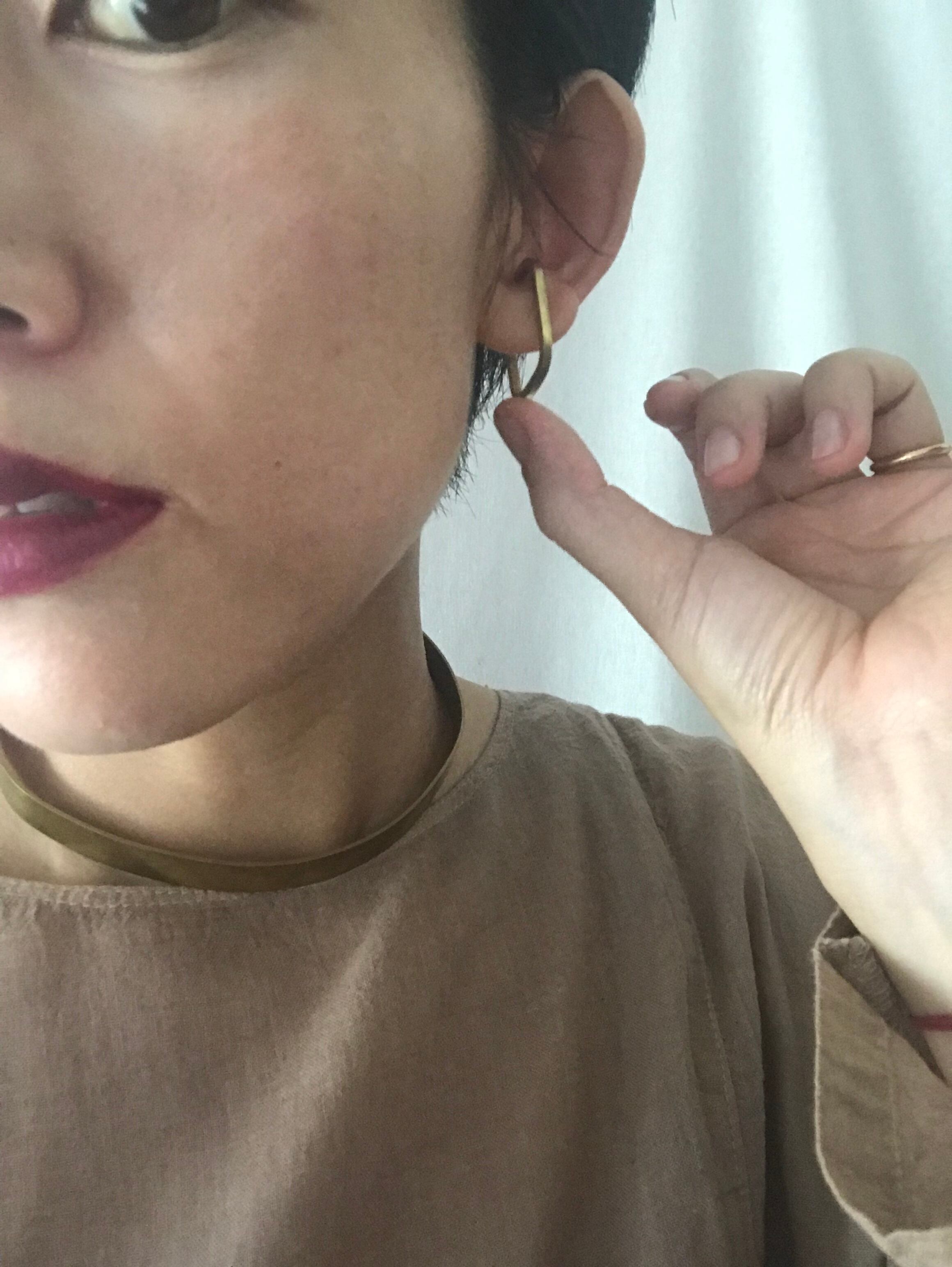 *縦約2㎝、横約2.5㎝〜2㎝。1点1点手作業の為、多少の誤差はございます。真鍮ゴールド。軽め。耳の軟骨あたりにはめ込んで、引っ掛けるタイプです。