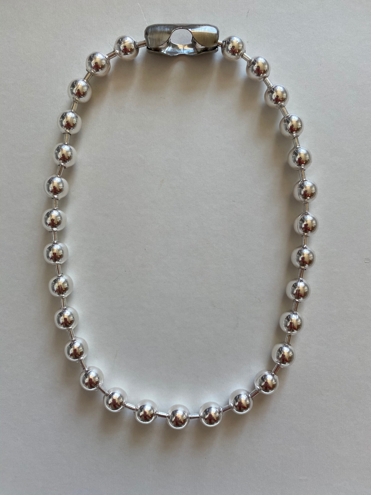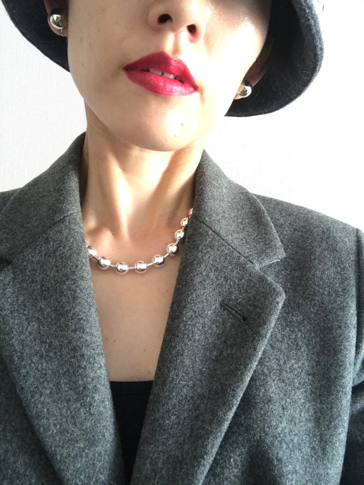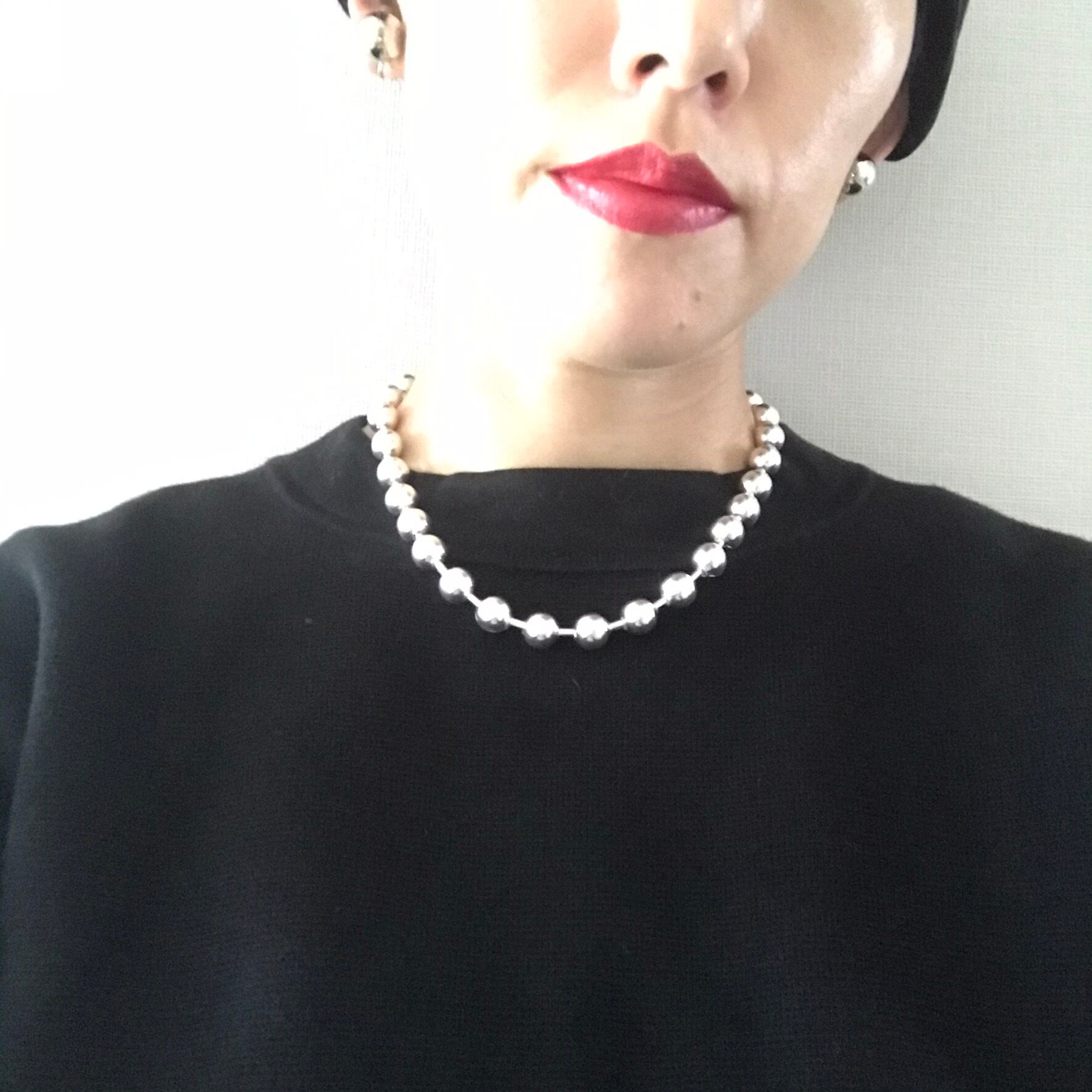 一粒1㎝。コネクター部分は、ステンレス素材約3㎝。軽め。ありそうでないsilverのボールチェーン。大粒のボールチェーンは、無垢なsilver PRESSにより品のあるネックレスです。