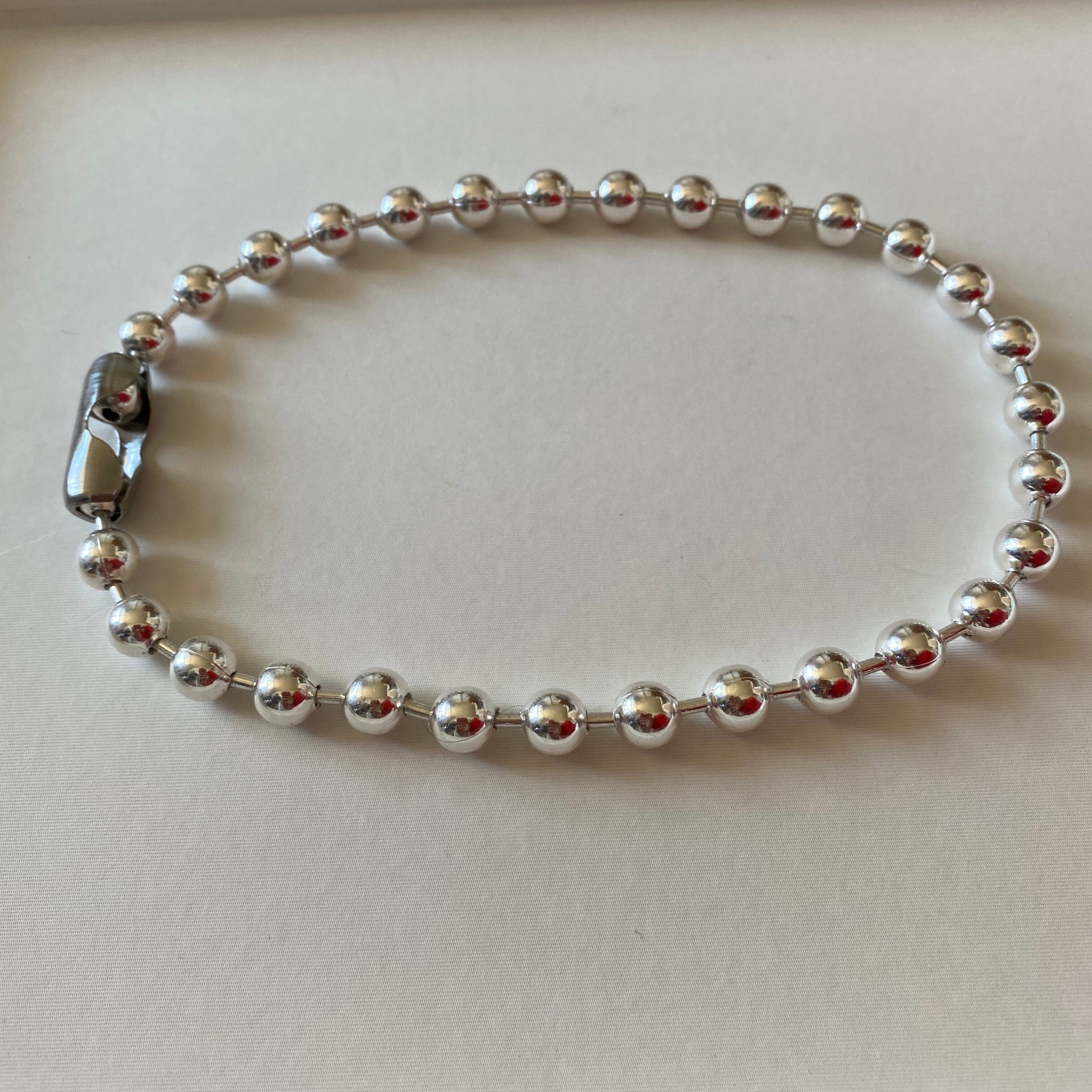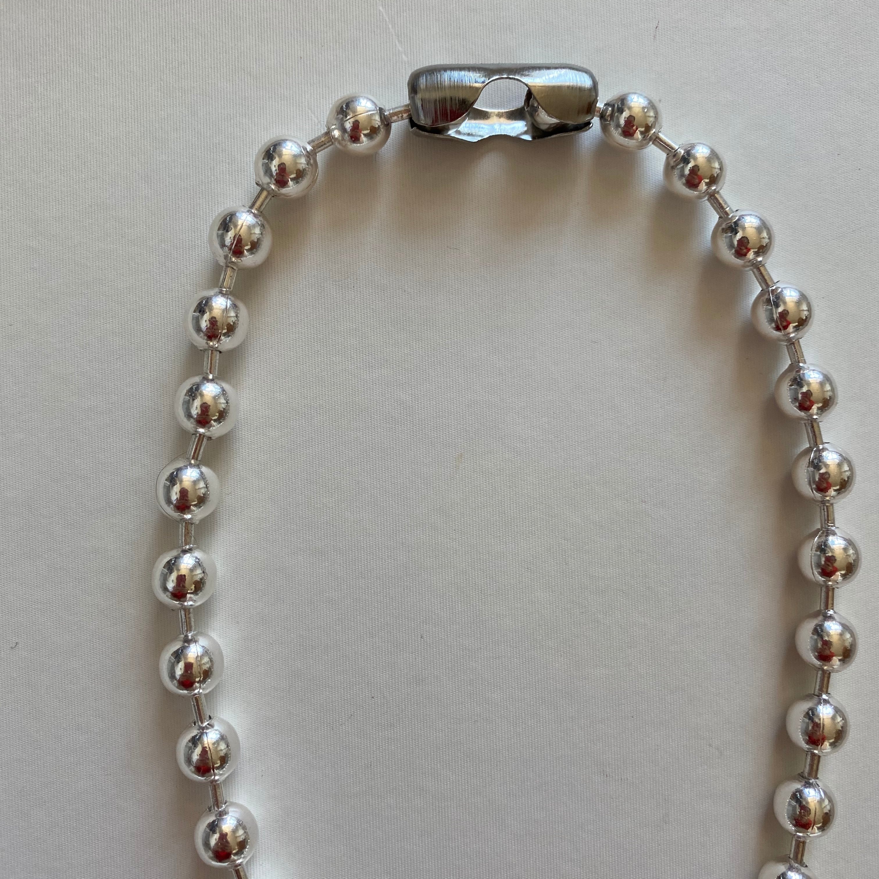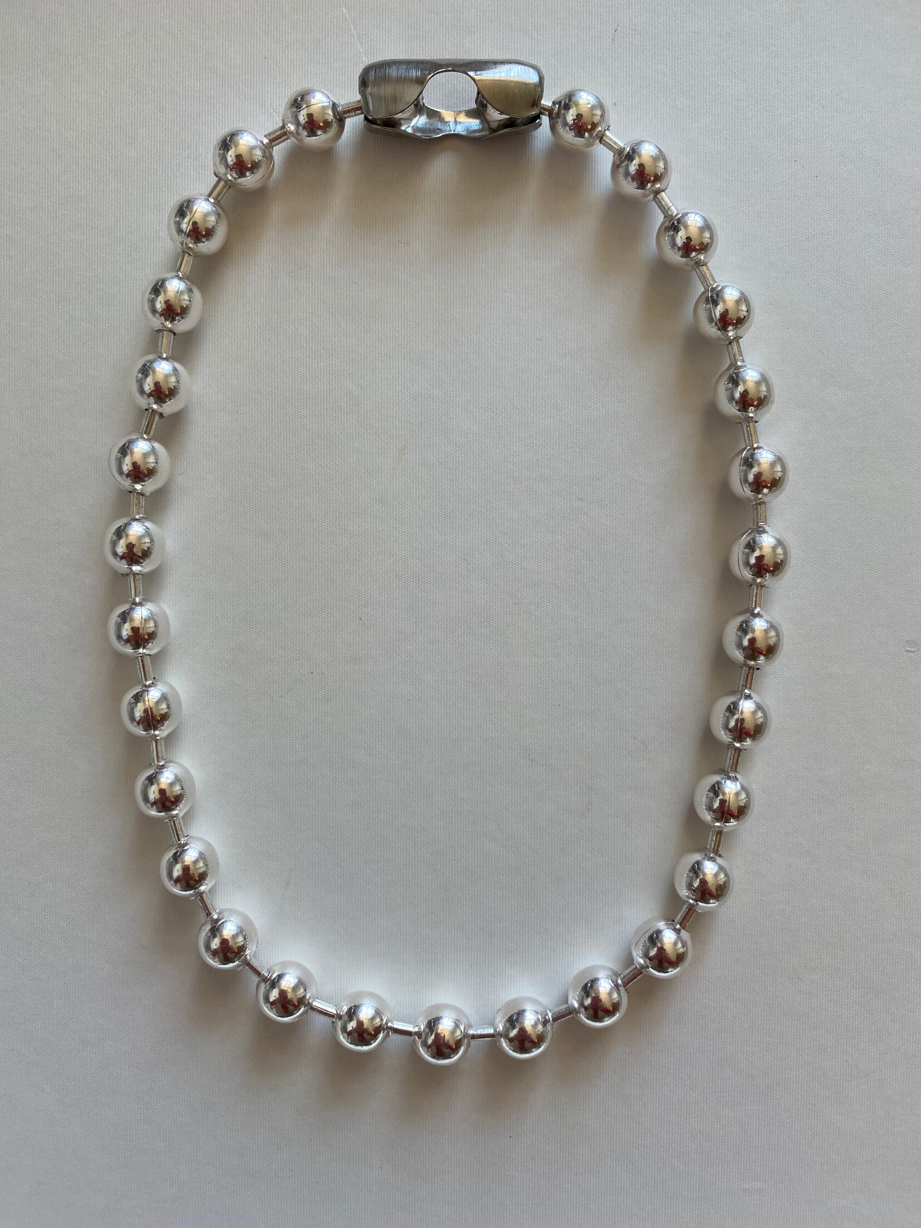 一粒1㎝。コネクター部分は、ステンレス素材約3㎝。軽め。ありそうでないsilverのボールチェーン。大粒のボールチェーンは、無垢なsilver PRESSにより品のあるネックレスです。