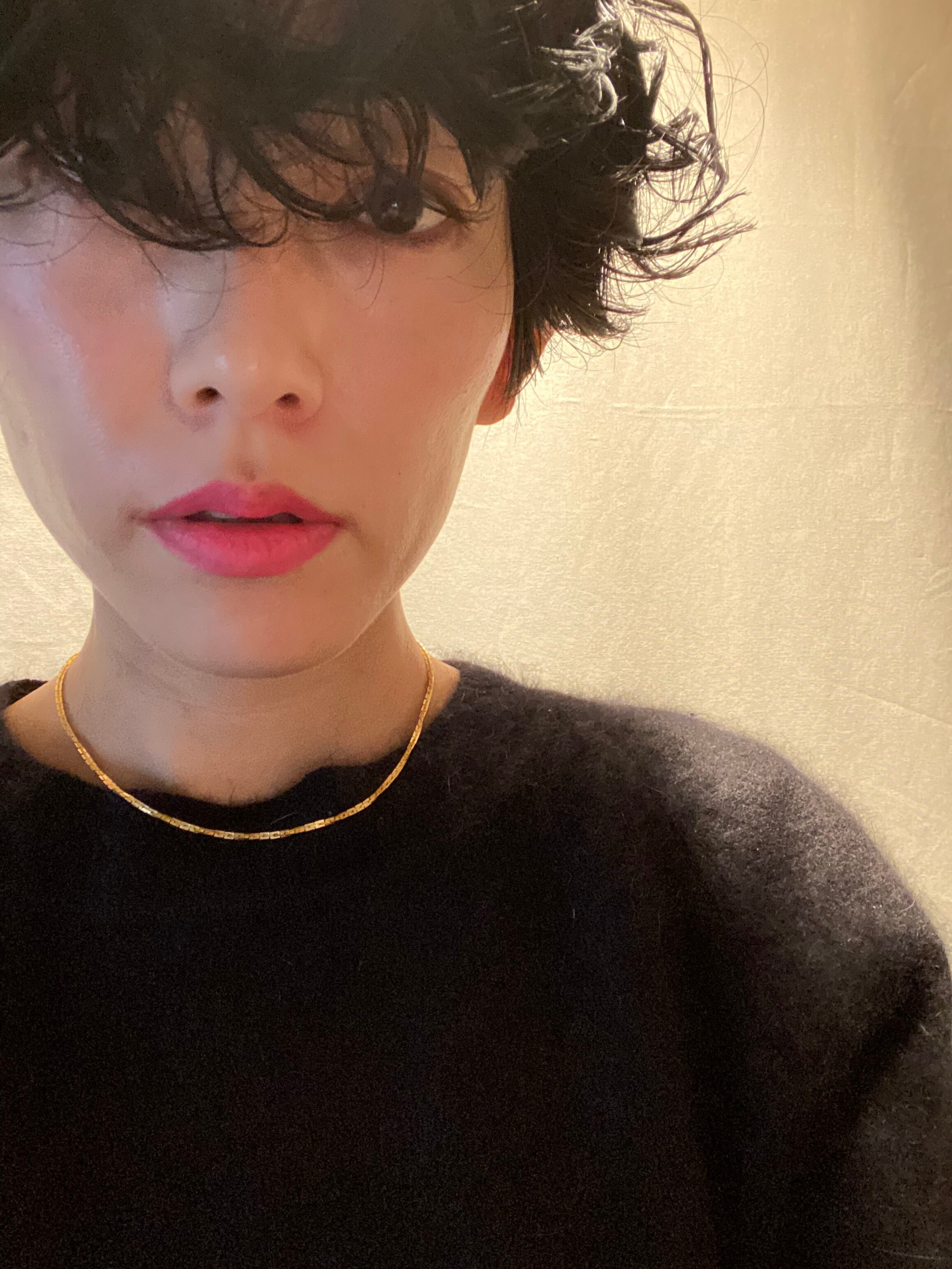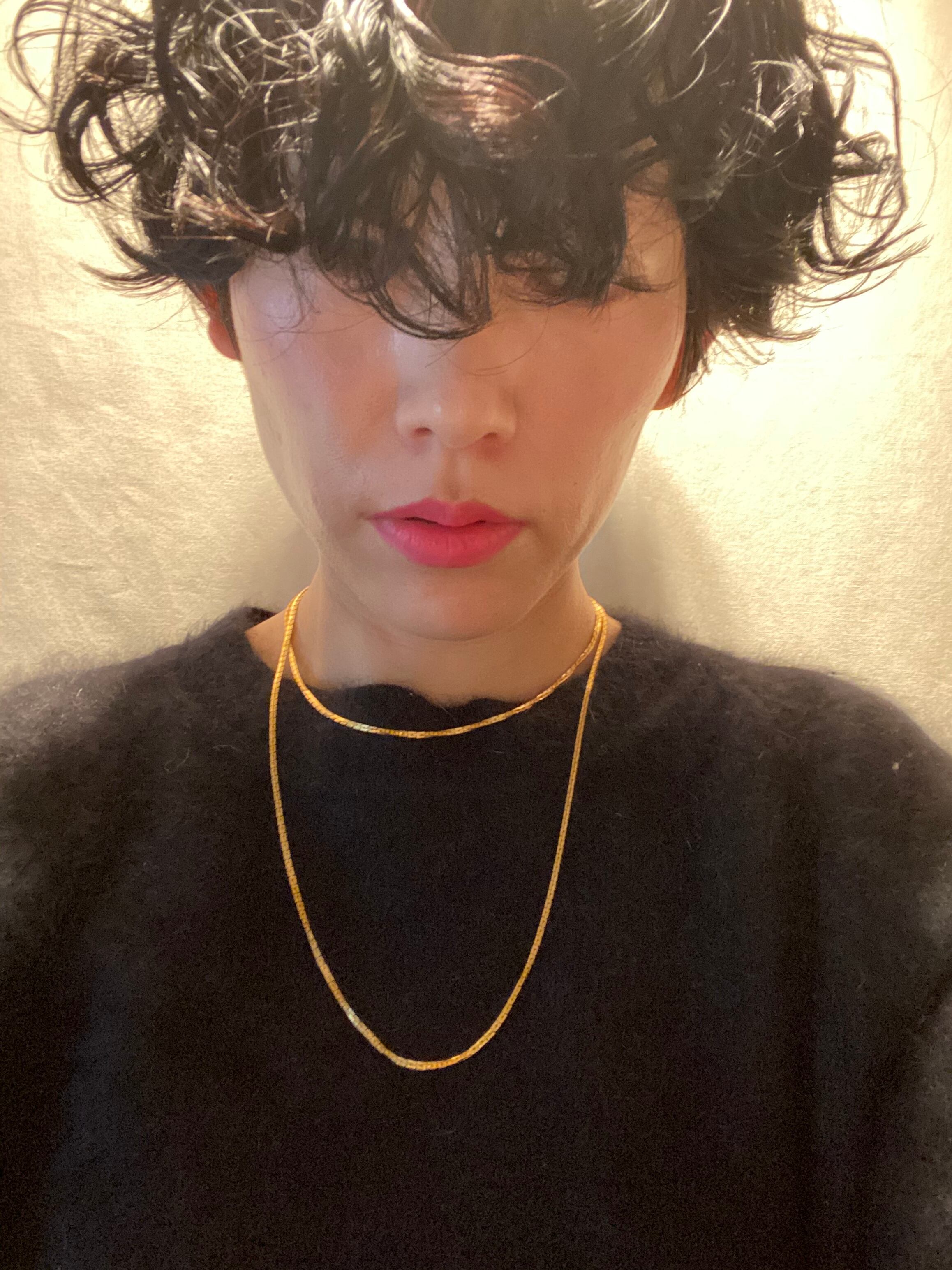 華奢でありながら、重厚感のある雰囲気。鎖骨にそって動きの出るネックレス。重ね付けはもちろん、シルバーとの合わせもおススメです。