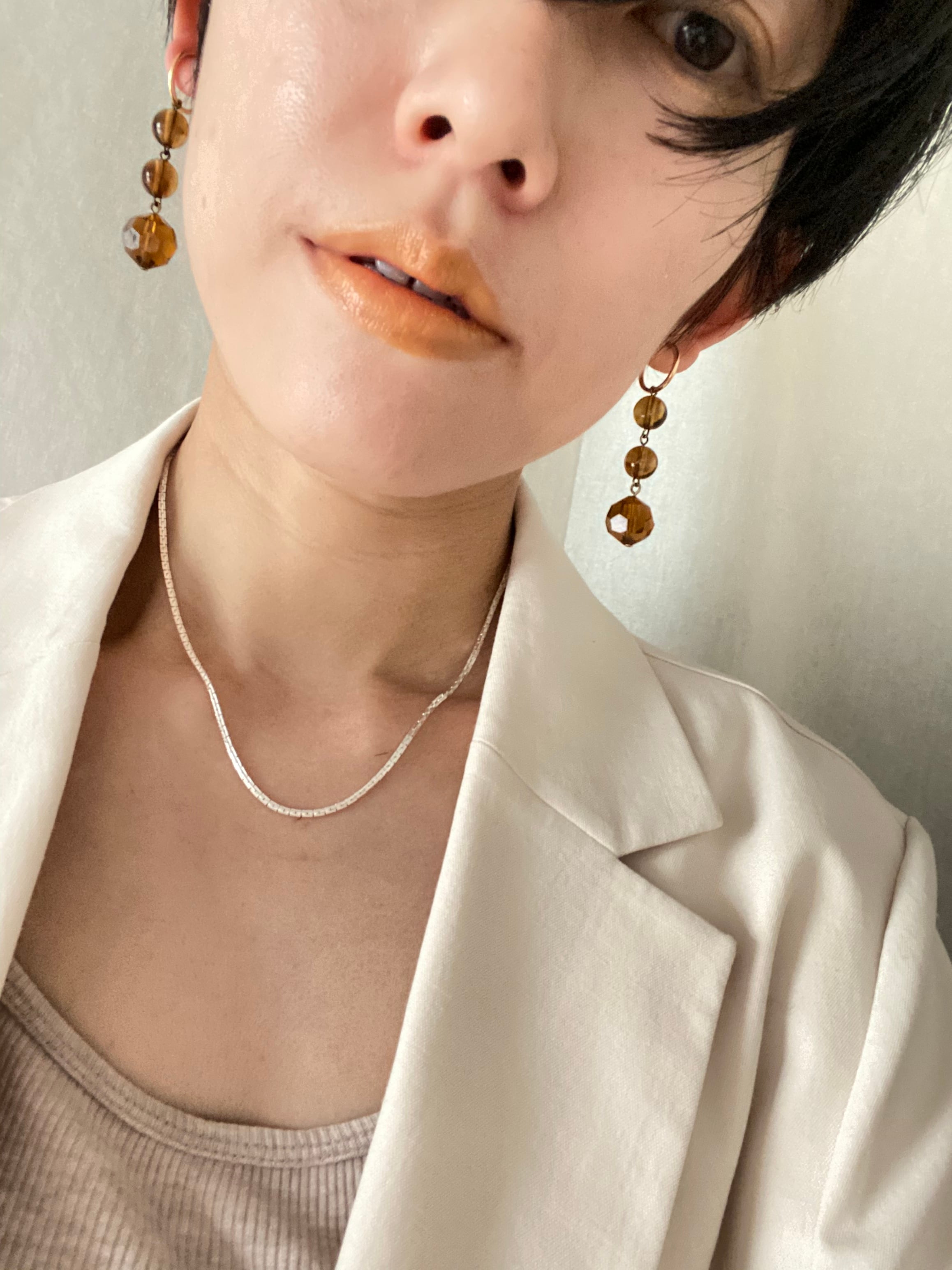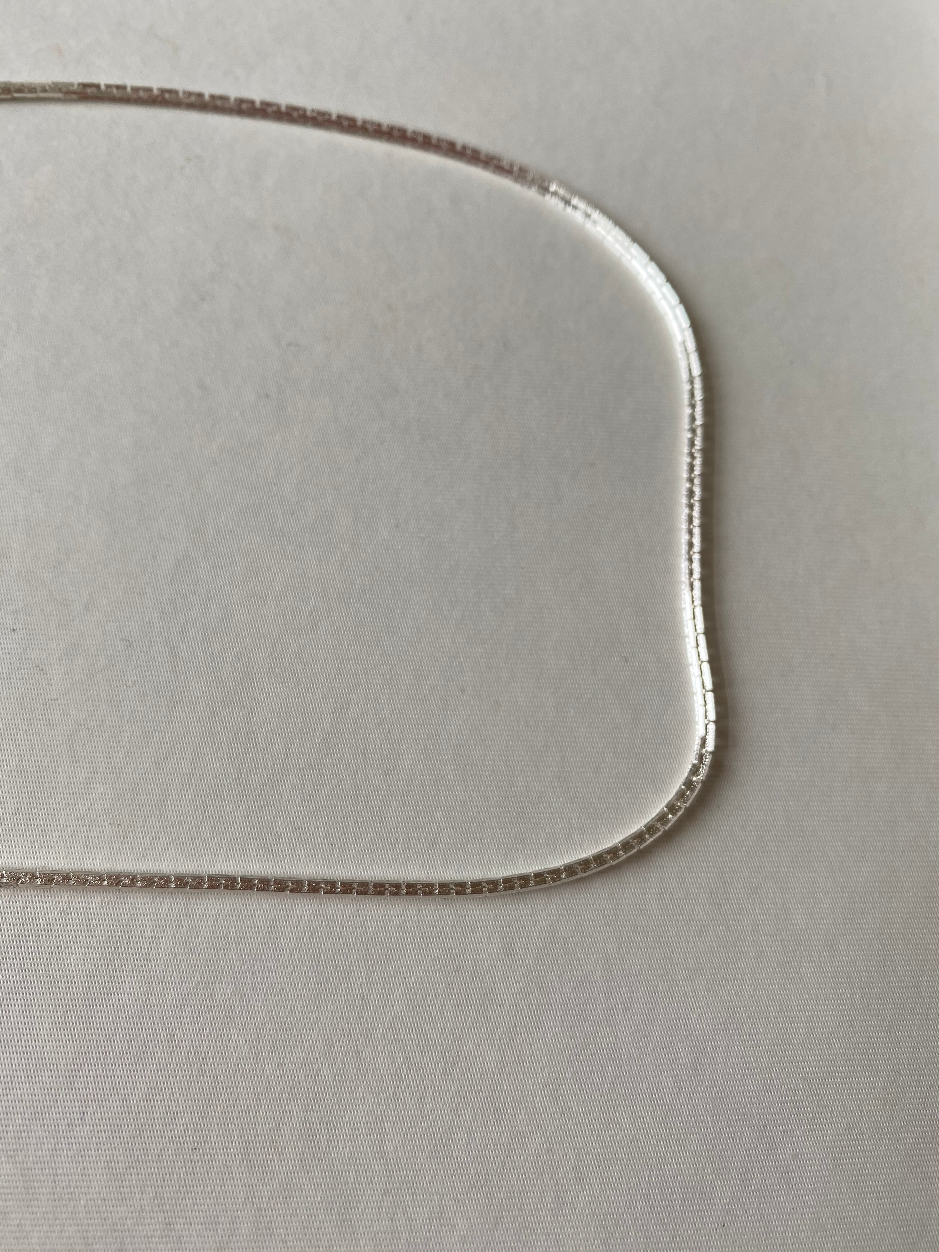 華奢でありながら、重厚感のある雰囲気。鎖骨にそって動きの出るネックレス。