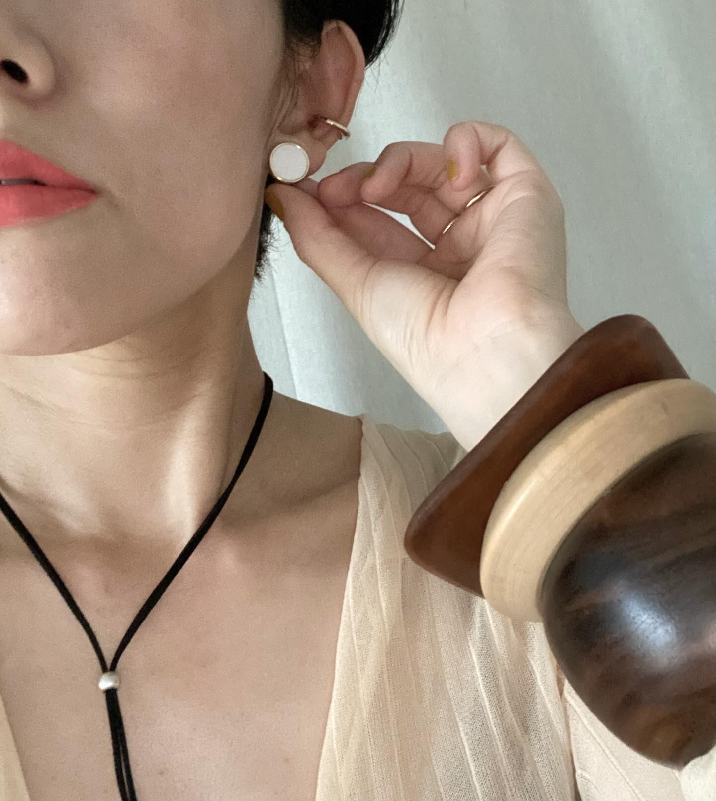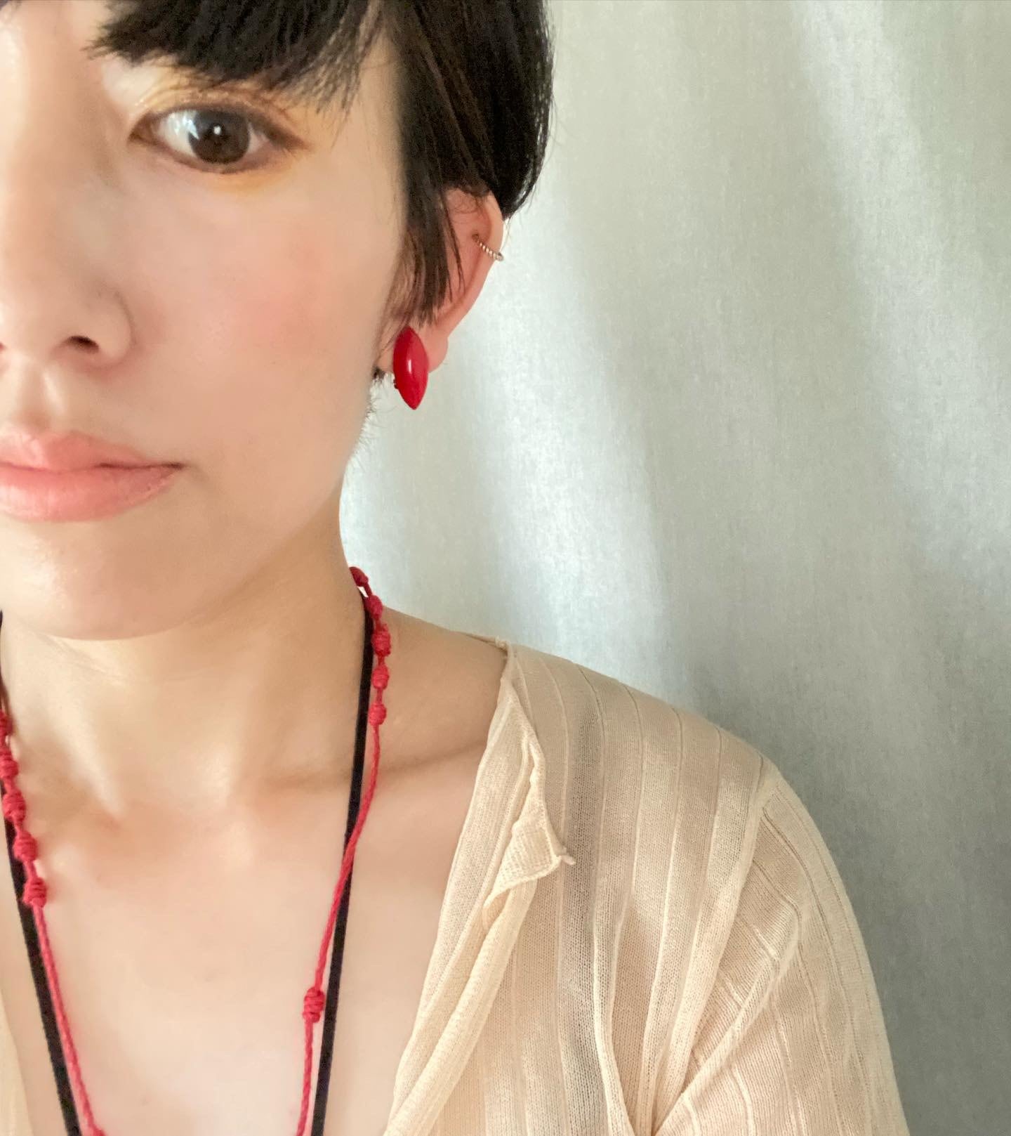 black、camel、redの3色。長さは、それぞれイメージはまちまち。silverやgoldのネックレスと重ねても良いし、
