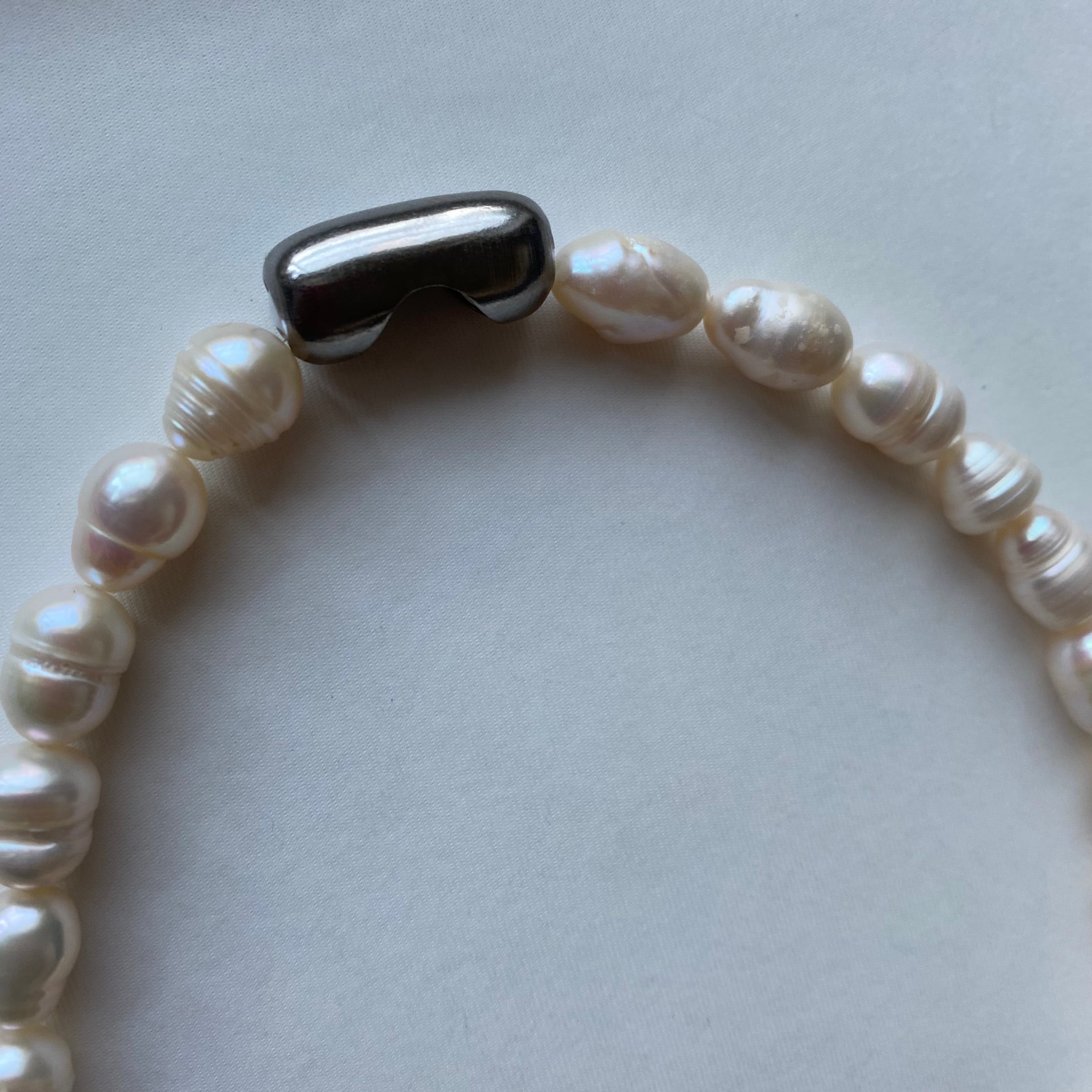 シンプルなPerlのネックレスを制作。長さ約37㎝。