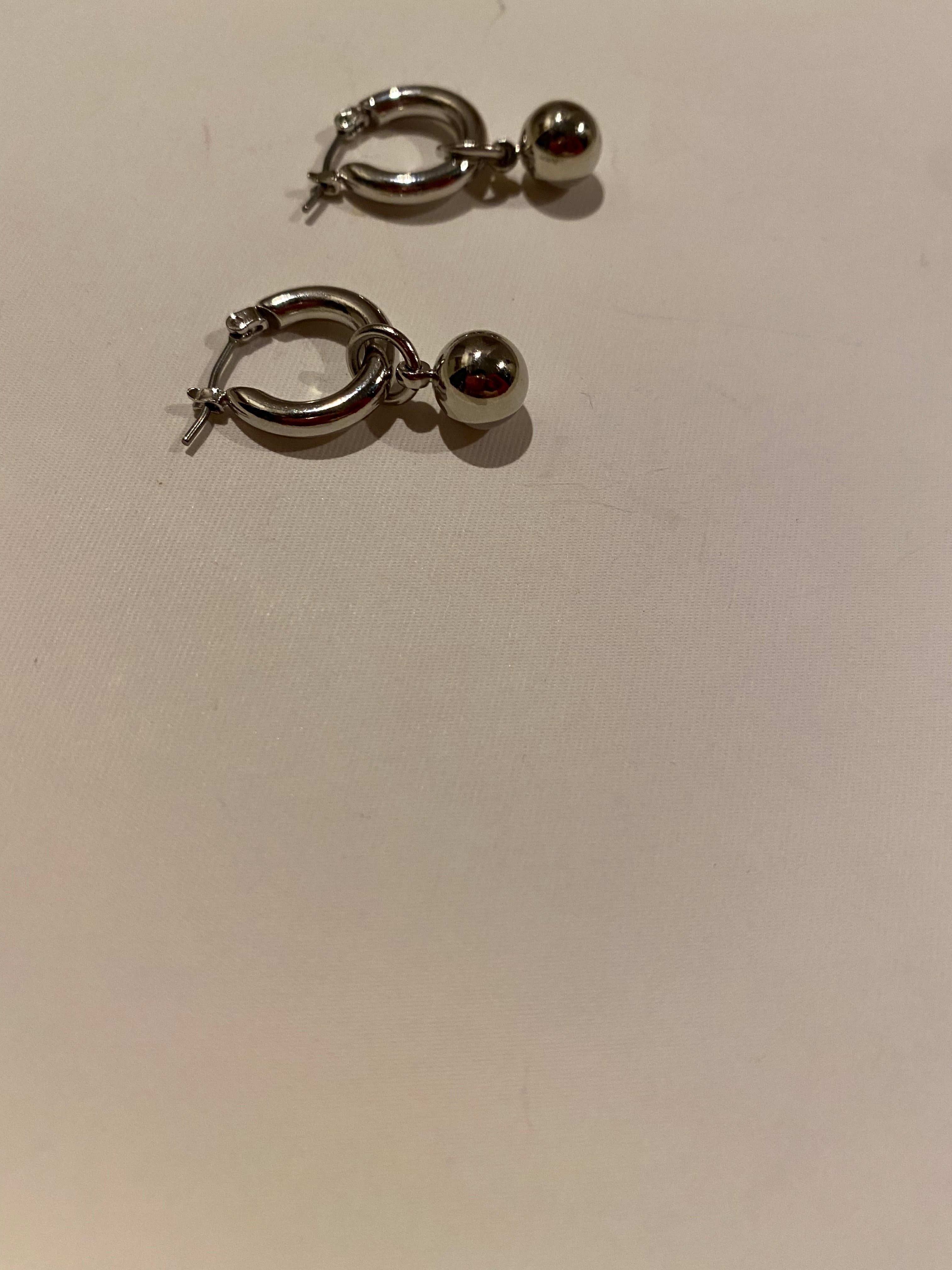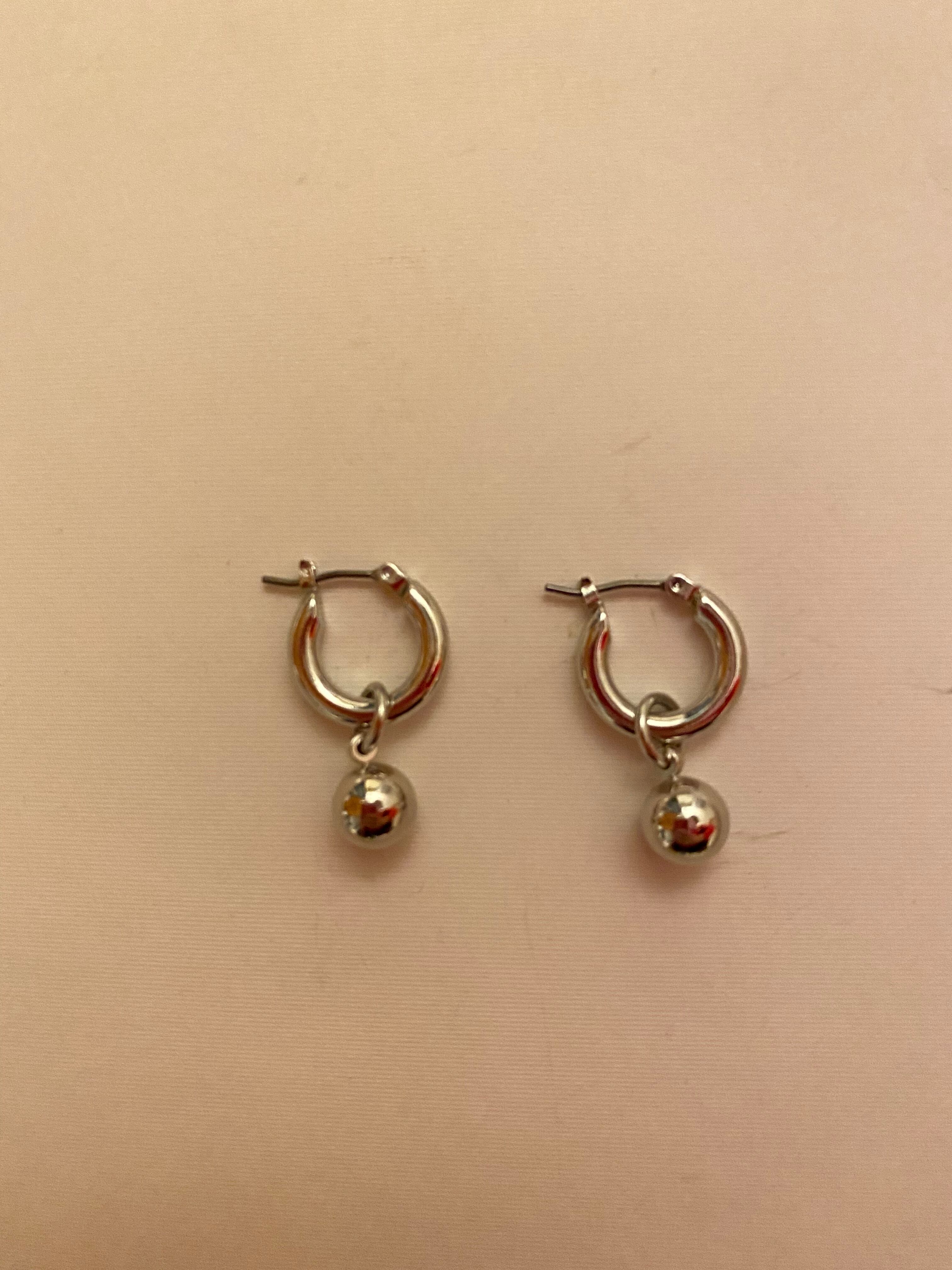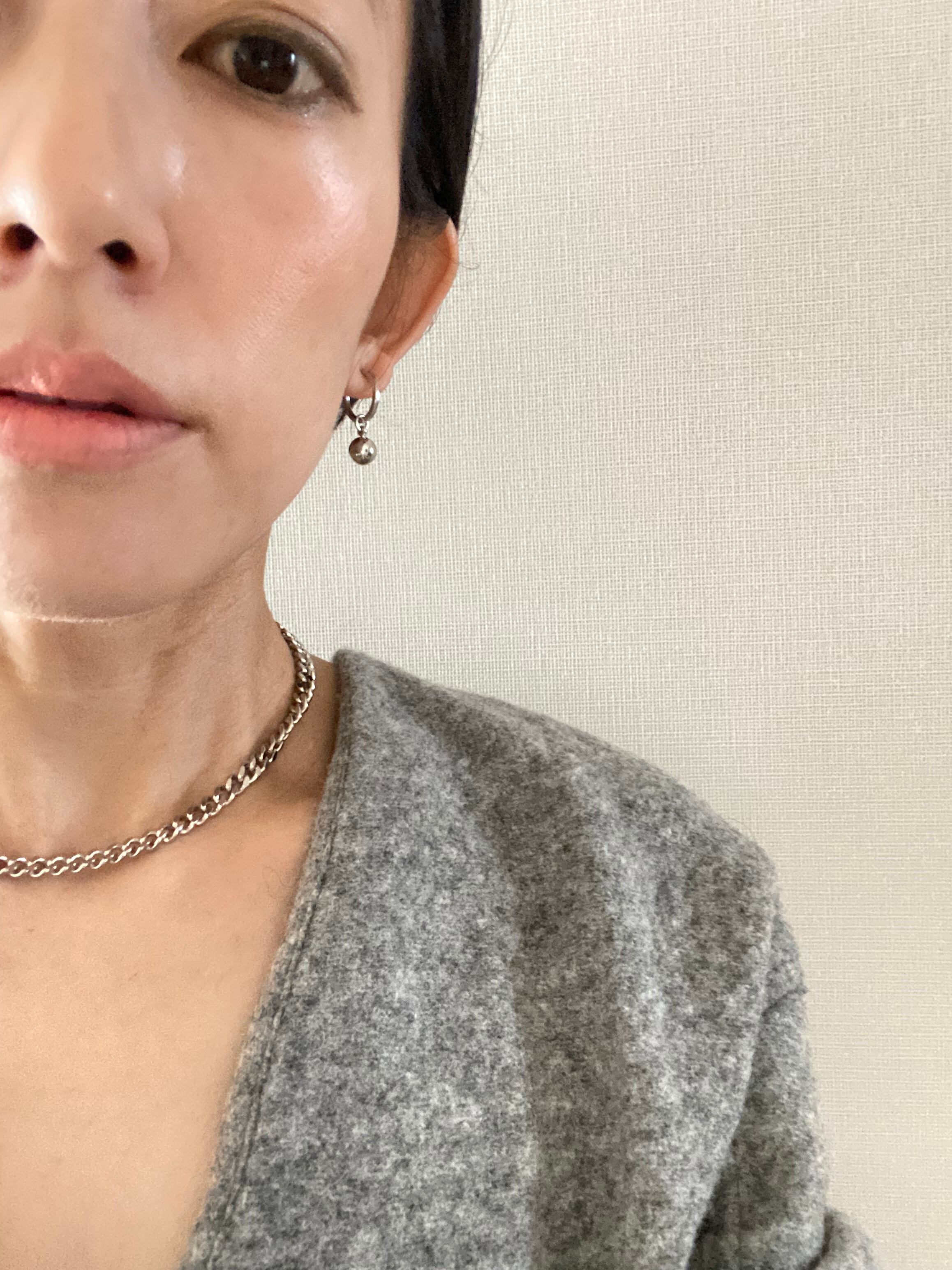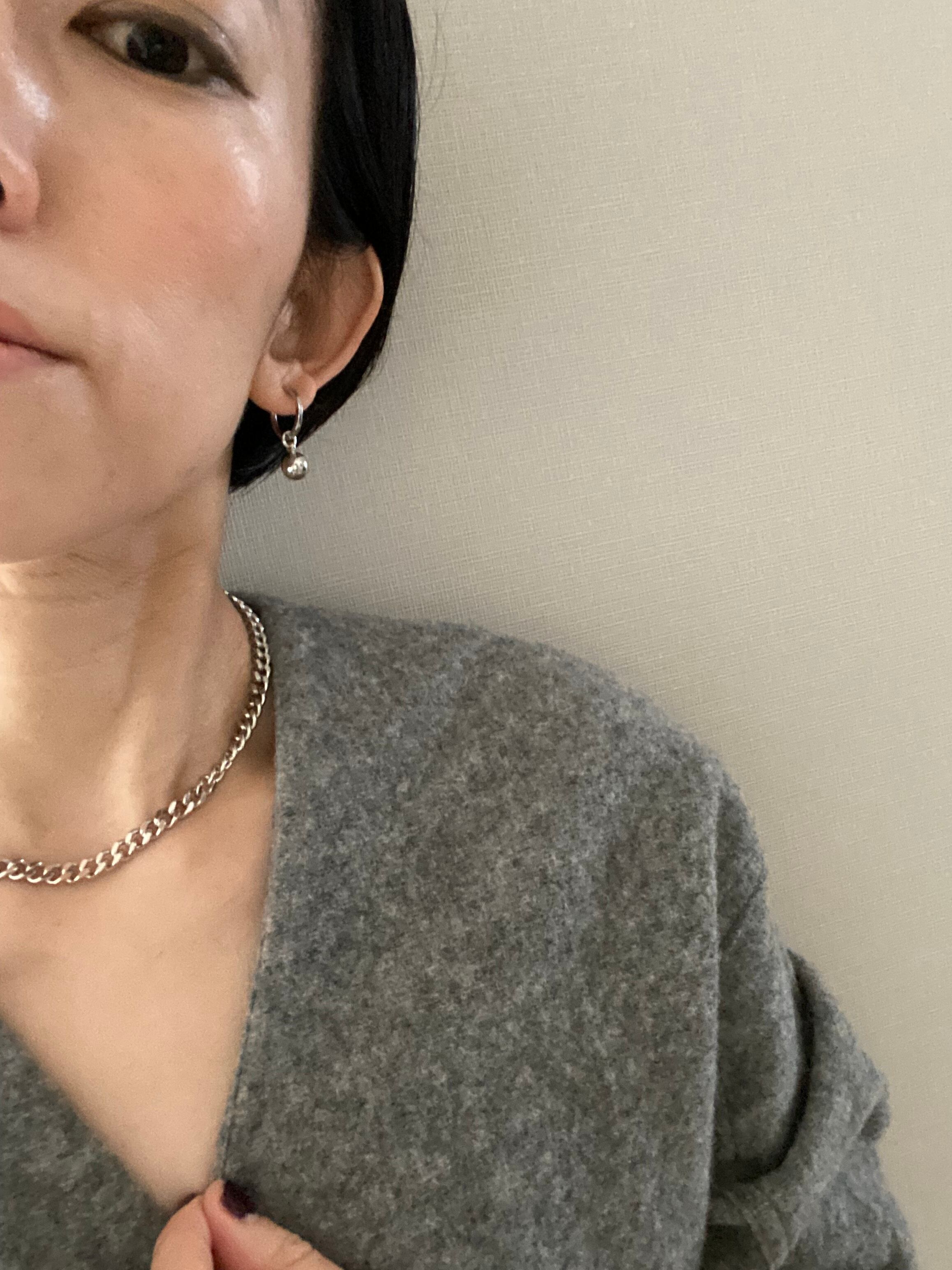 ボールがほのかに揺れるシンプルなアイテム。合わせやすく、シルバー系が苦手な方も取り入れて頂けると思います。